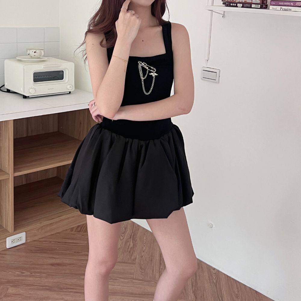 【芭蕾蓬蓬】DOMISS個性甜美結合! 吊帶裙洋 洋裝-2色(現貨)黑色|白色DOMISS 朵蜜絲