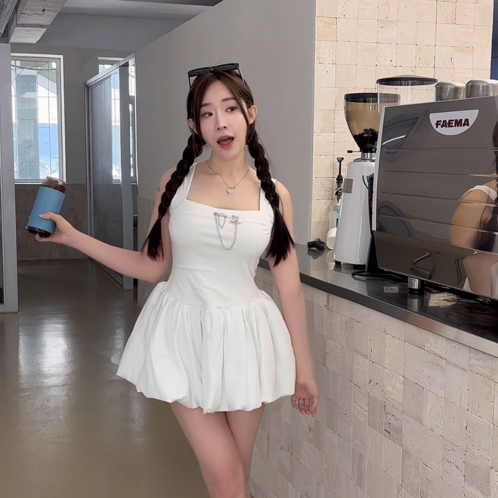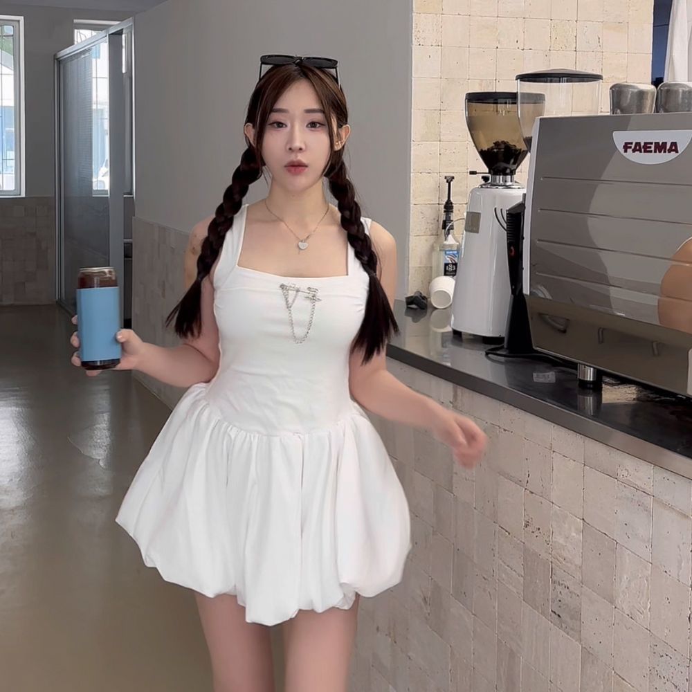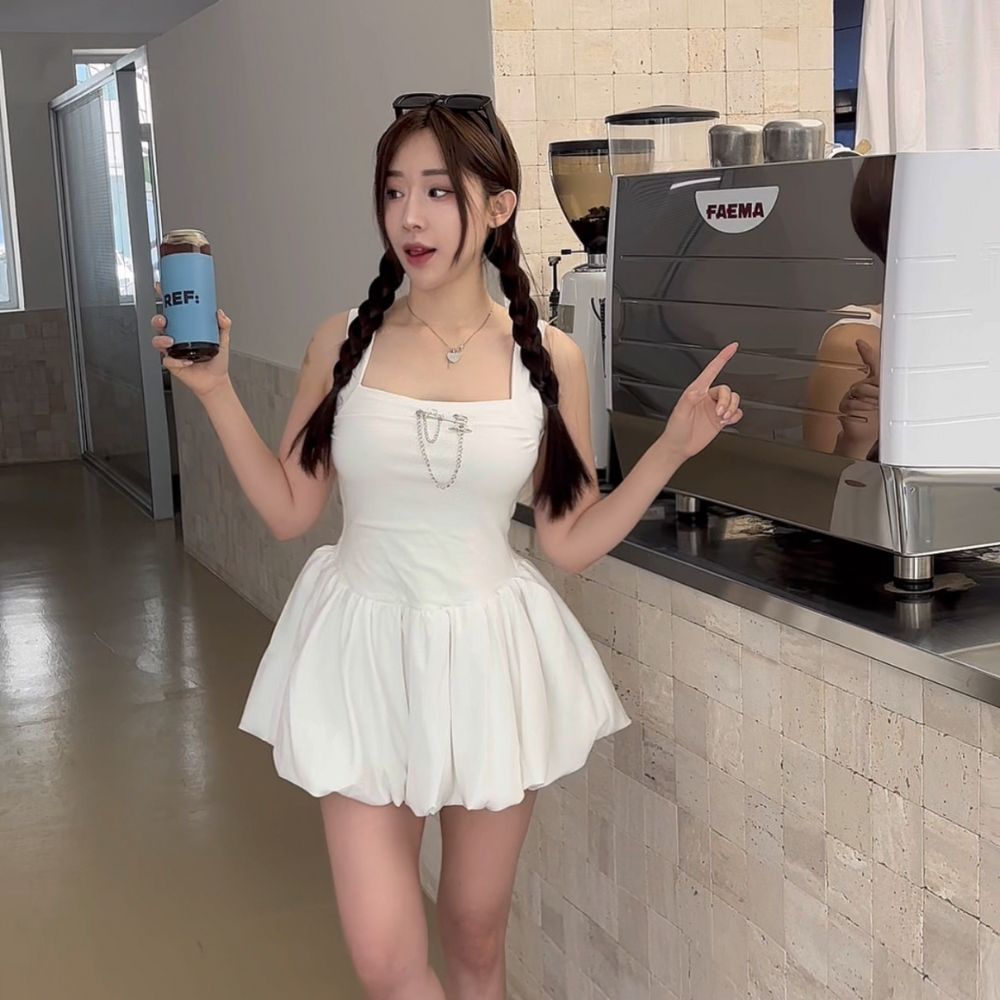 【芭蕾蓬蓬】DOMISS個性甜美結合! 吊帶裙洋 洋裝-2色(現貨)