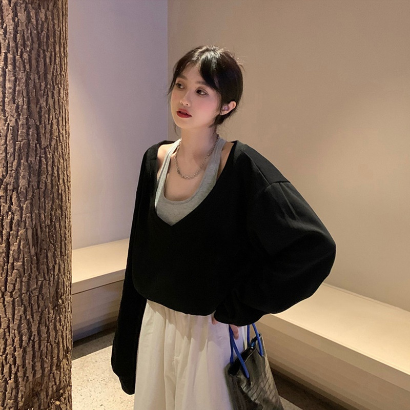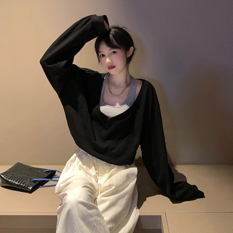 【DIFF】韓版露肩假兩件設計感寬鬆短版上衣 短袖上衣 短袖t恤 女裝 顯瘦上衣 衣服 寬鬆上衣 短板上衣【W343】【W343】白灰|【W343】淺灰|【W343】灰咖 OthersDiFF shop