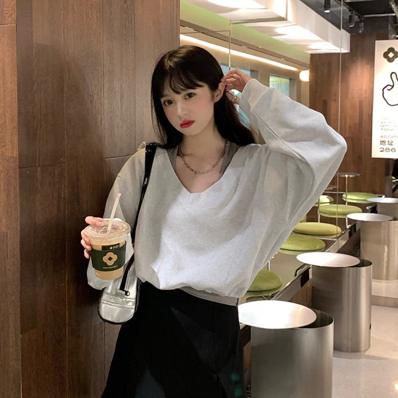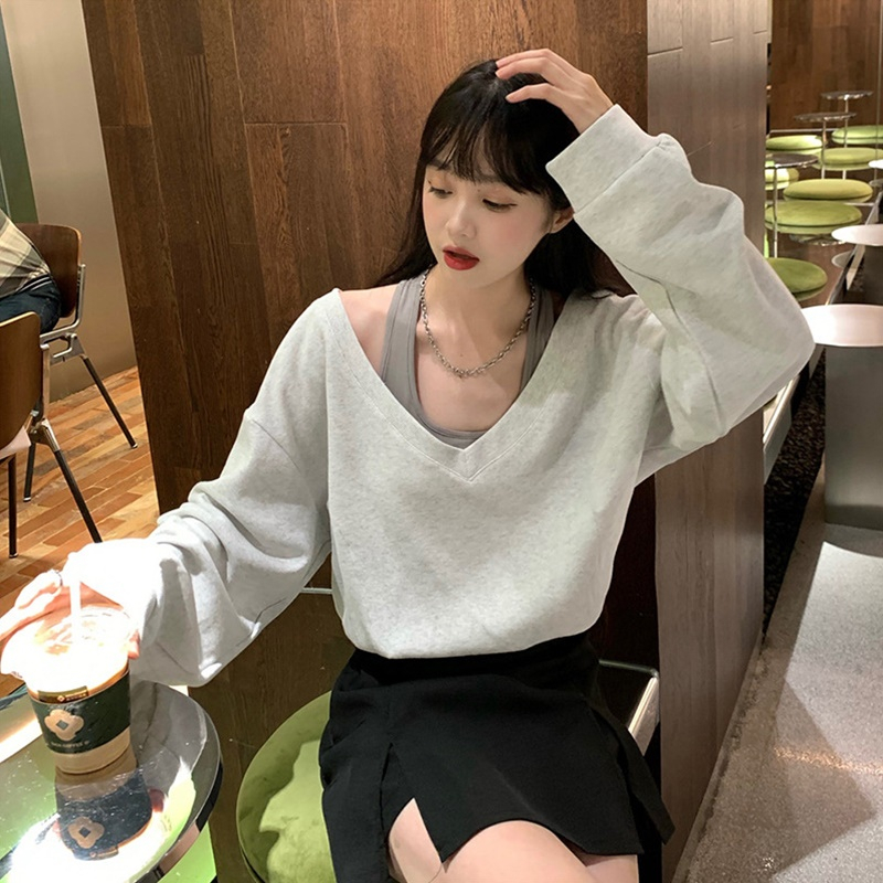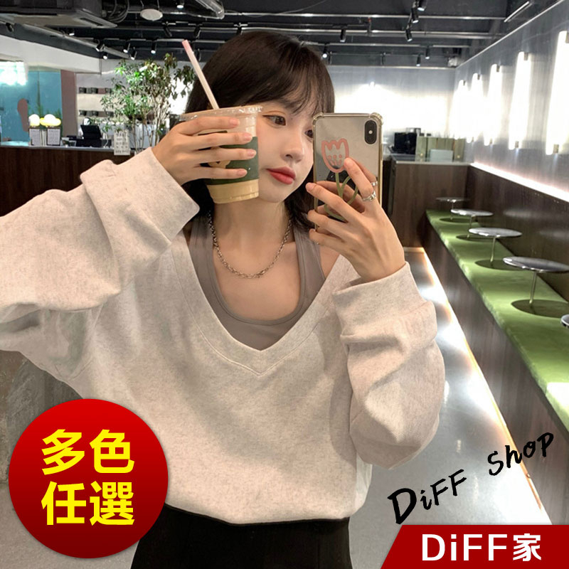 【DIFF】韓版小眾設計感收腰顯瘦長袖上衣 女裝 衣服 長袖t恤 保暖上衣 冬季女裝 秋冬女裝【W563】【W563】深灰色|【W563】淺灰色SweatshirtsDiFF shop