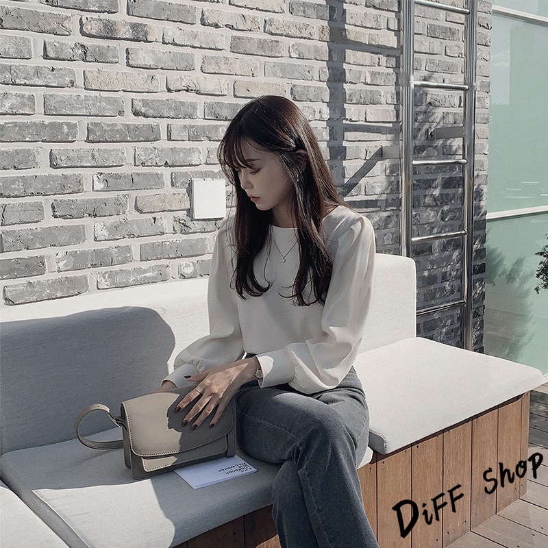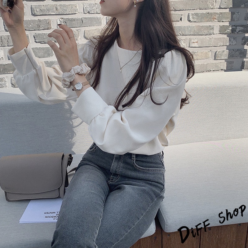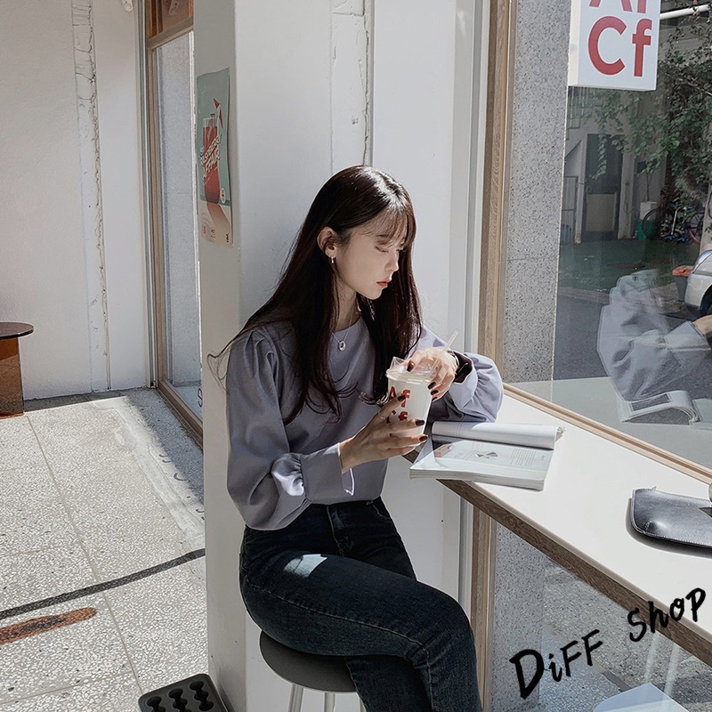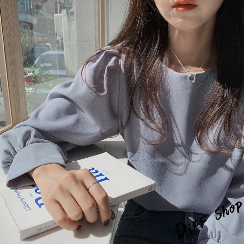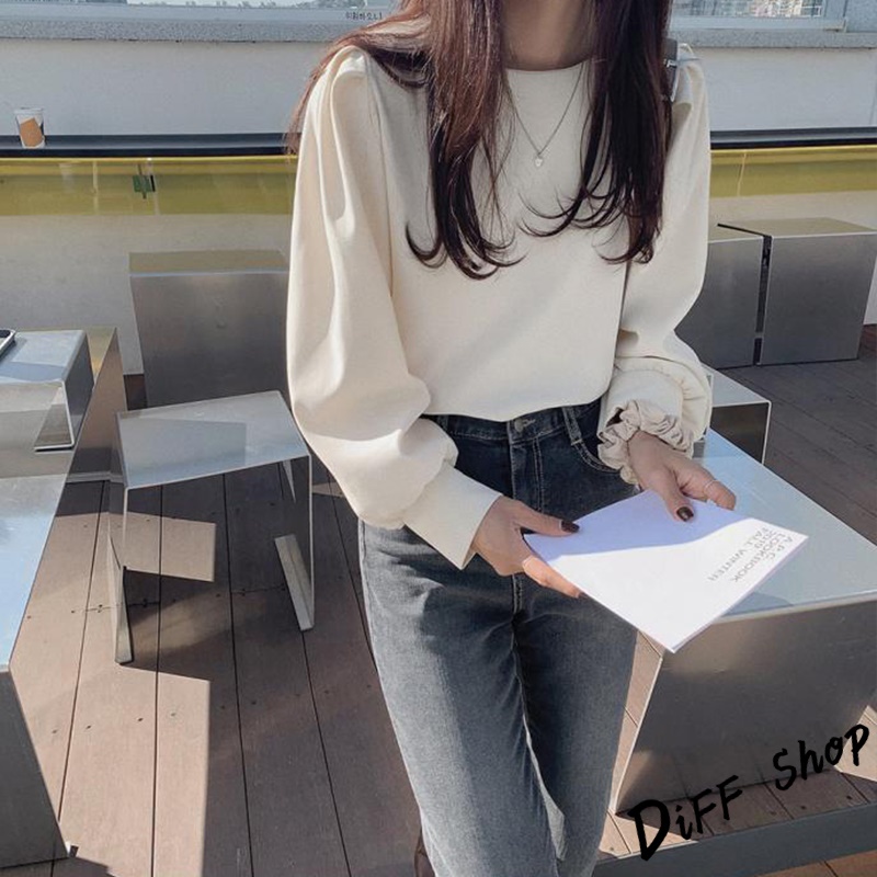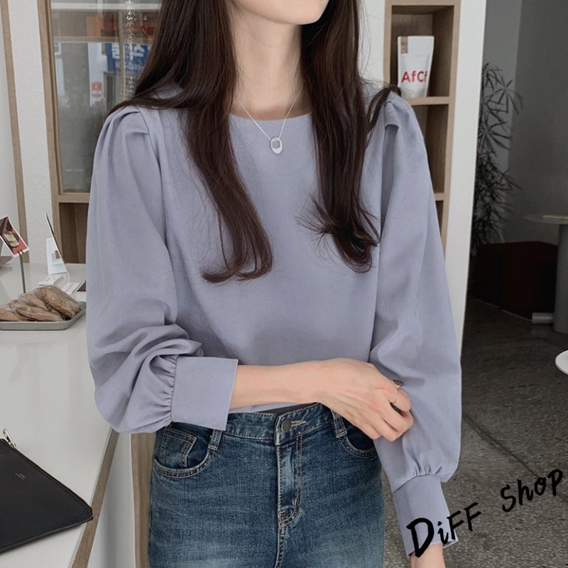 【DIFF】韓版簡約氣質百搭設計感小眾長袖上衣 女裝 衣服 寬鬆上衣 顯瘦上衣 素色 冬裝 長袖t恤 素T【W201】【W201】白色|【W201】藍色T-shirtsDiFF shop