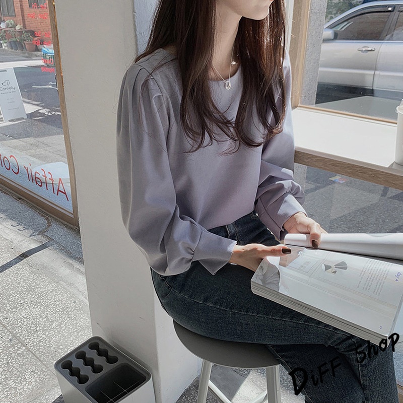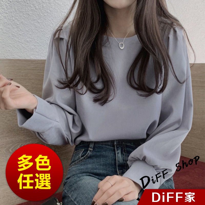 【DIFF】韓版簡約氣質百搭設計感小眾長袖上衣 女裝 衣服 寬鬆上衣 顯瘦上衣 素色 冬裝 長袖t恤 素T【W201】