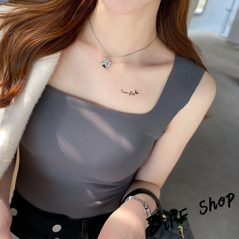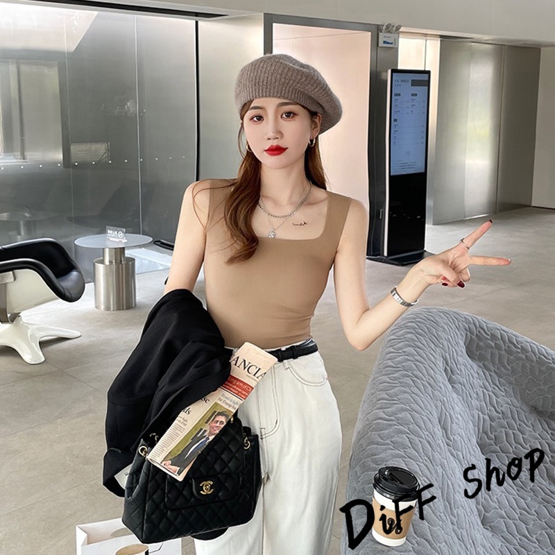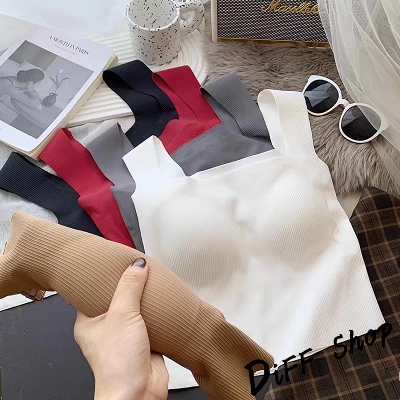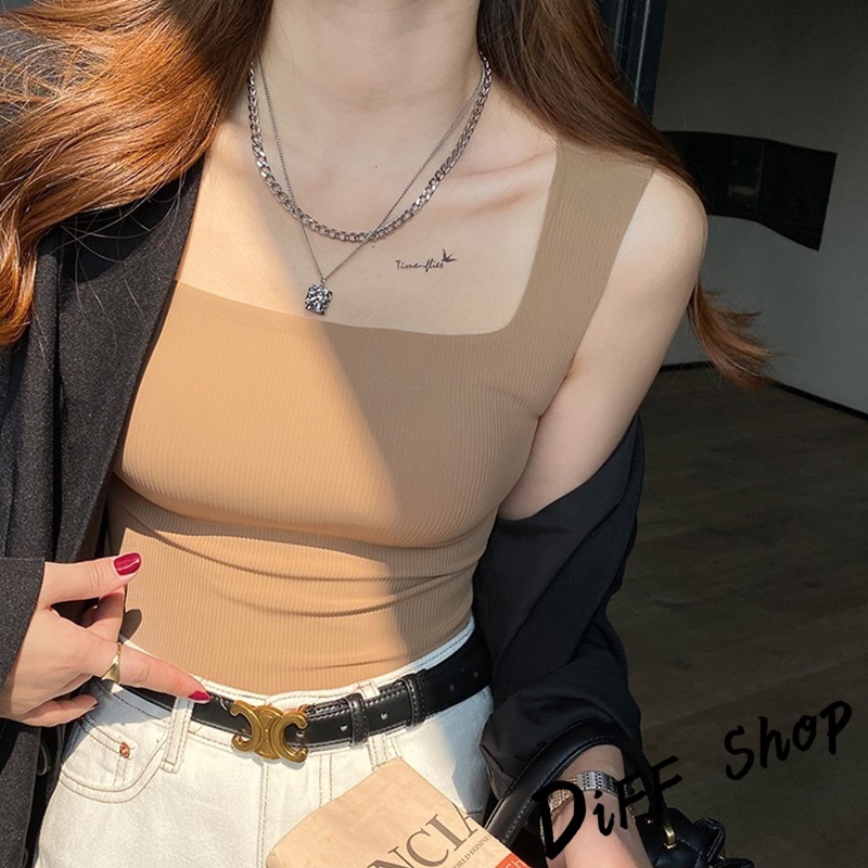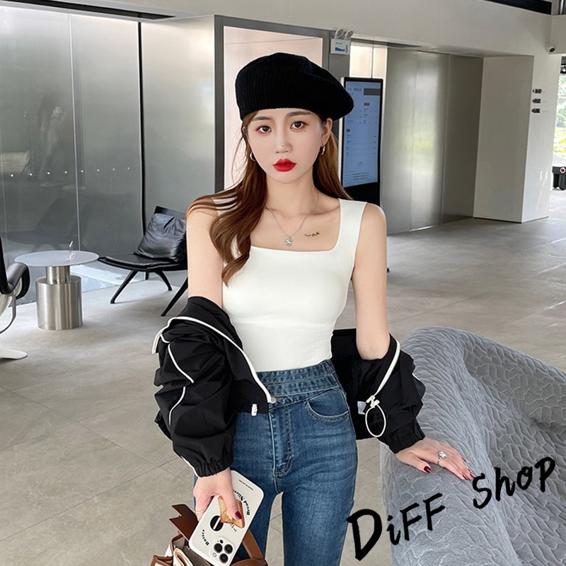 【DIFF】韓版寬肩方領短版背心 帶胸墊 小可愛 女裝 衣服 短版上衣 短板上衣 運動背心 運動上衣【V347】【V347】白色|【V347】灰色|【V347】黑色|【V347】卡其Tanks & CamisolesDiFF shop