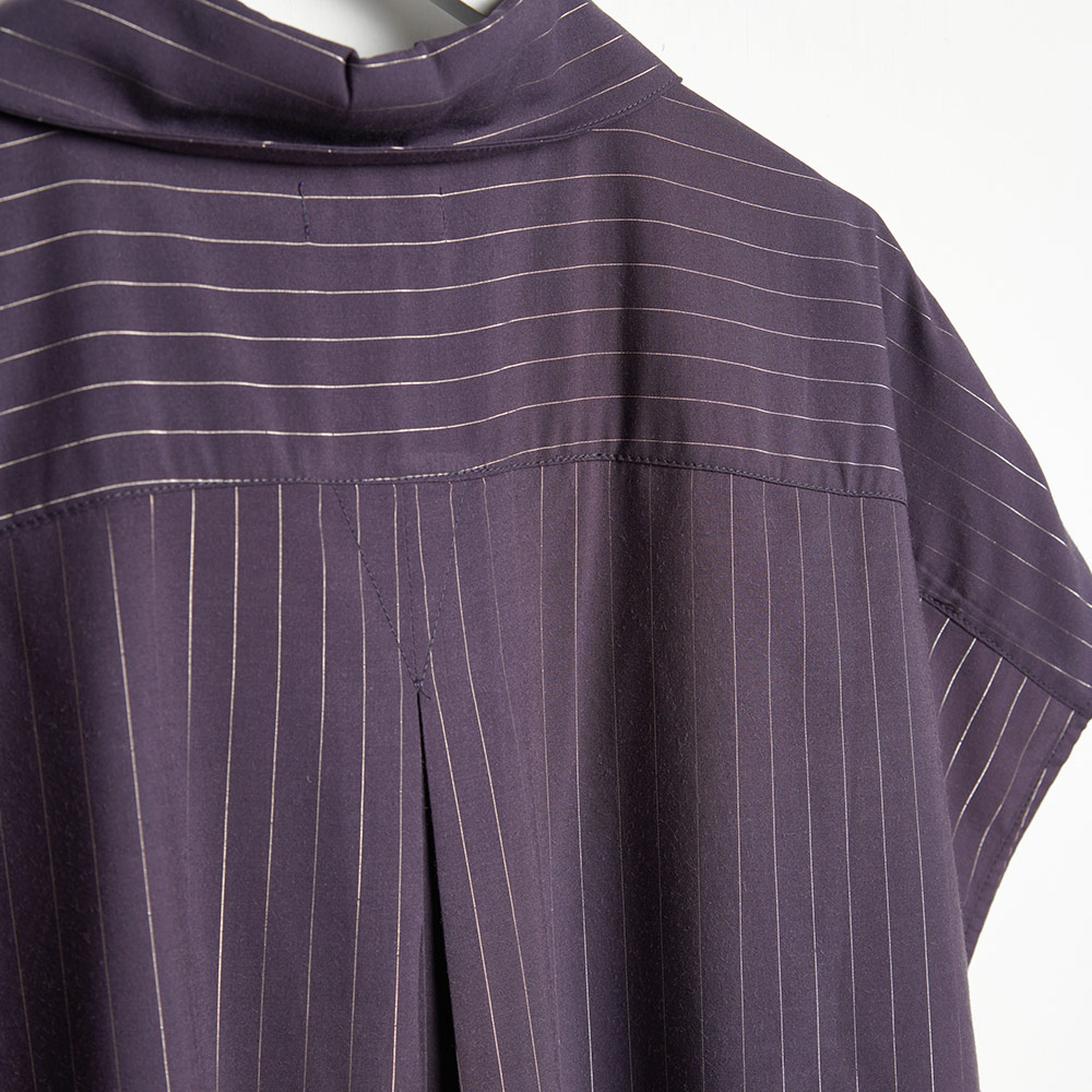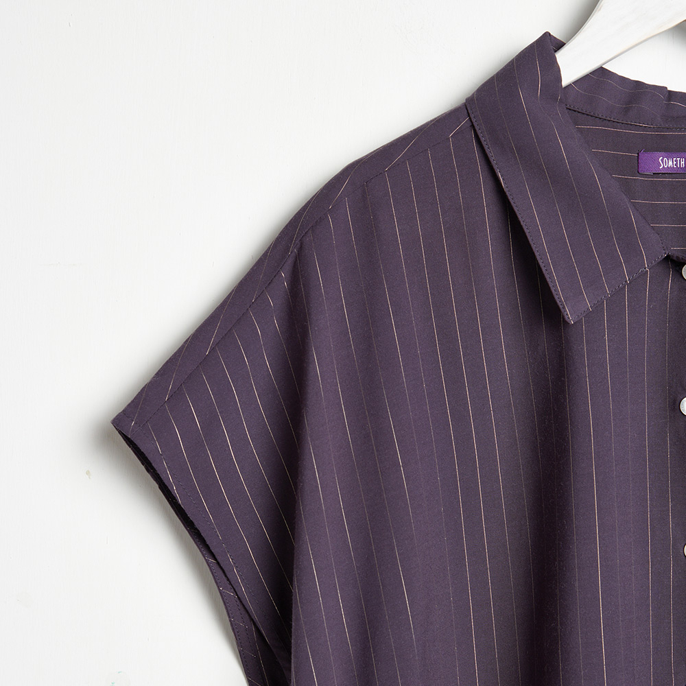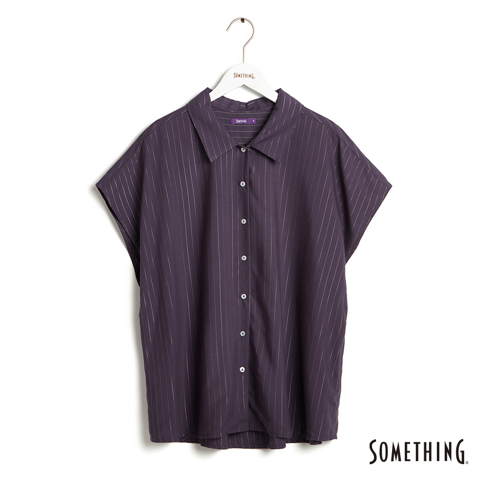 SOMETHING 女款 涼感天絲 金蔥細紋三分袖剪裁短袖襯衫(丈青色) FShirts & BlousesEDWIN 官方旗艦店