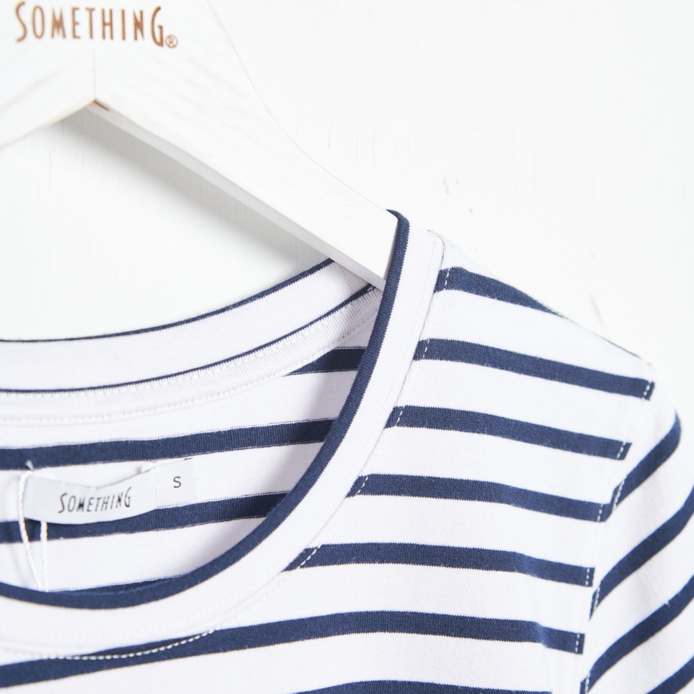 SOMETHING 女款 條紋向日葵刺繡印花短袖T恤(黑色) S|MT-shirtsEDWIN 官方旗艦店