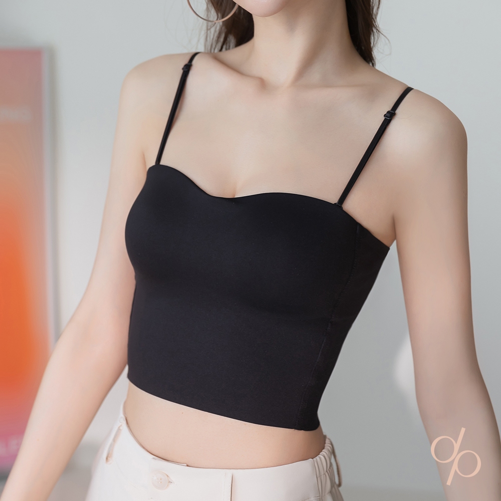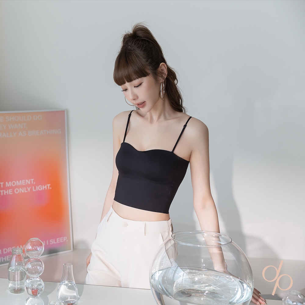 【DEPIC】冰絲無痕透氣微V領細肩BRA TOP (黑色)|dp select黑色M|黑色LTube TopsDEPIC