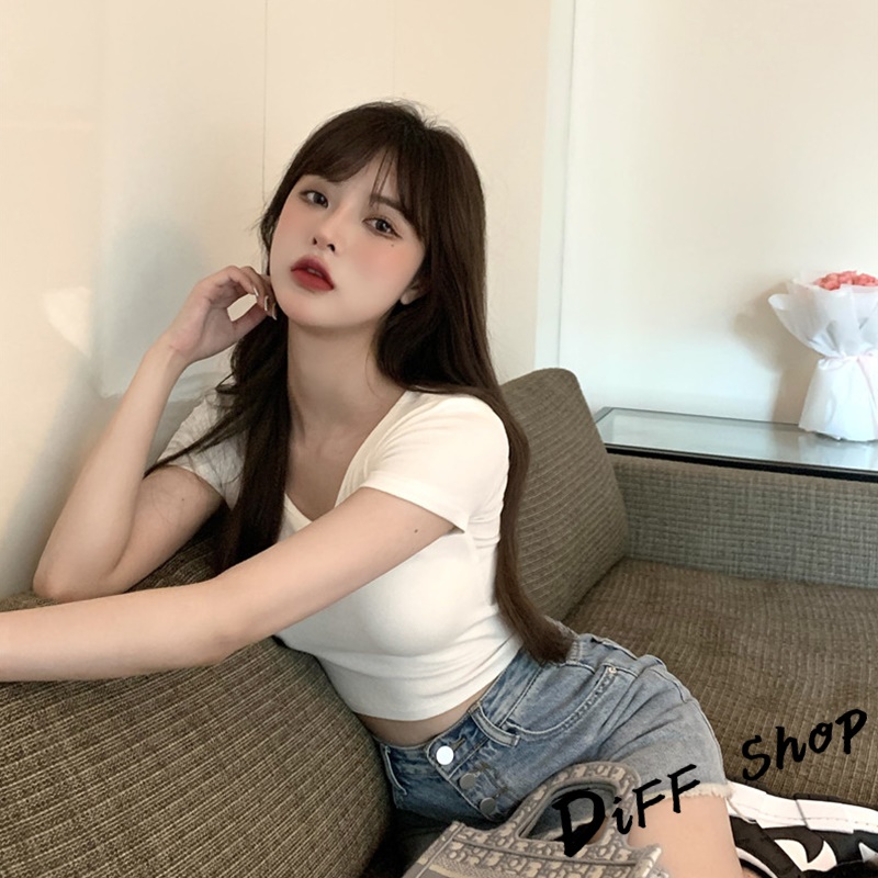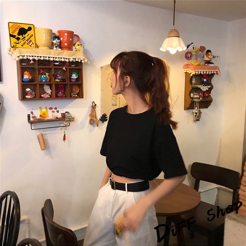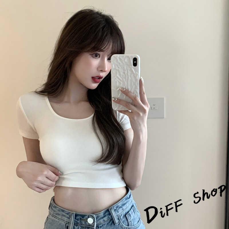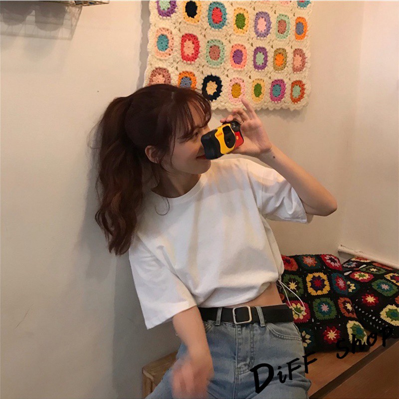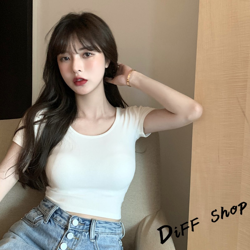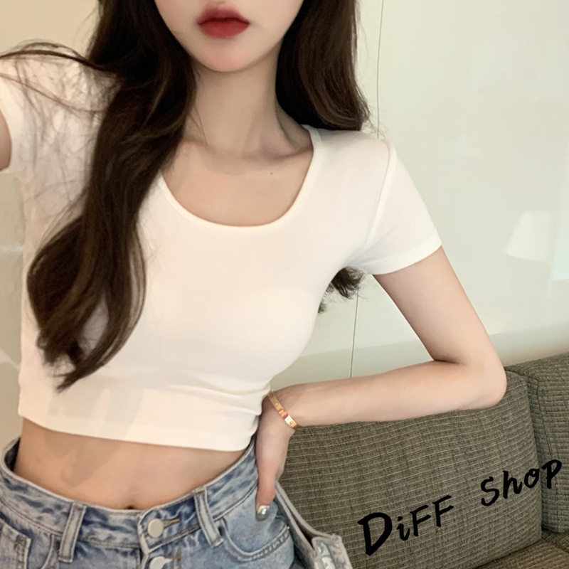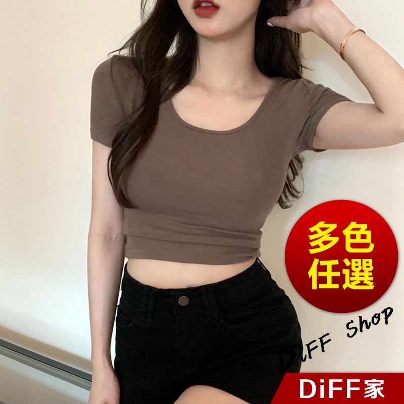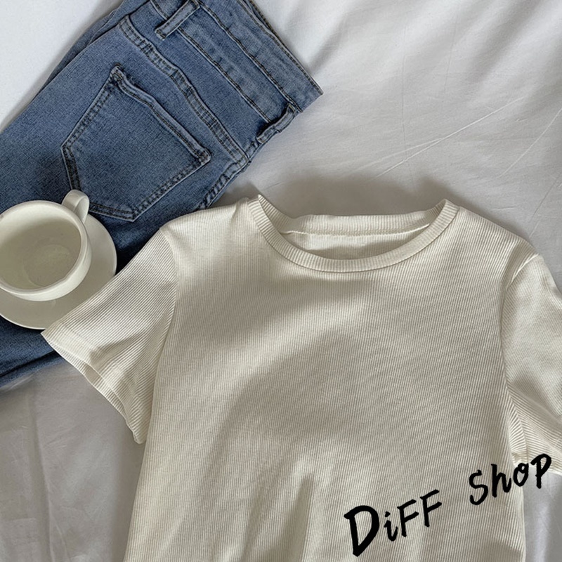 【DIFF】韓版素色圓領短版上衣 短袖上衣 短袖t恤 女裝 顯瘦上衣 衣服 寬鬆上衣 素T 短板上衣【T407】【T407】卡其|【T407】白色T-shirtsDiFF shop