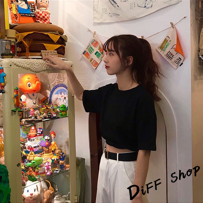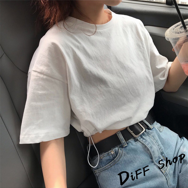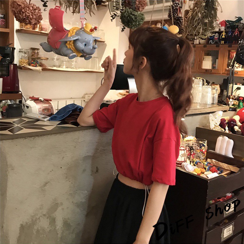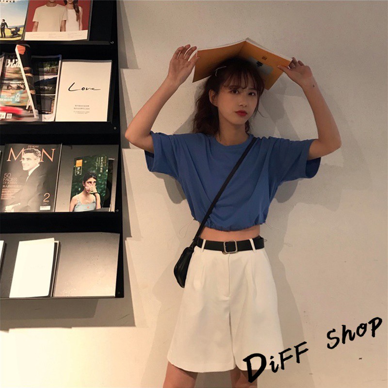 【DIFF】韓版拉繩收腰顯瘦短版上衣 短袖上衣 短袖t恤 女裝 顯瘦上衣 衣服 寬鬆上衣 素T【T320】【T320】黑色|【T320】藍色|【T320】白色|【T320】綠色|【T320】粉紫色|【T320】紅T-shirtsDiFF shop