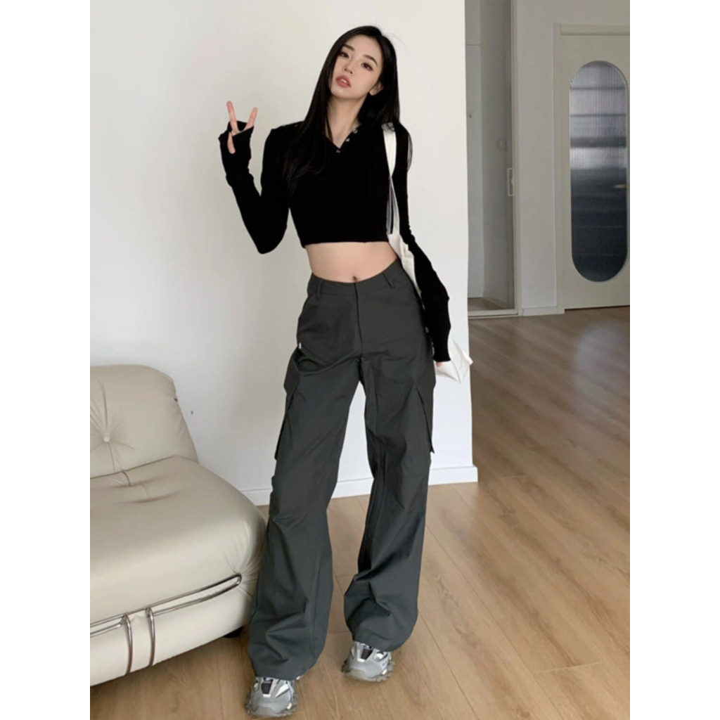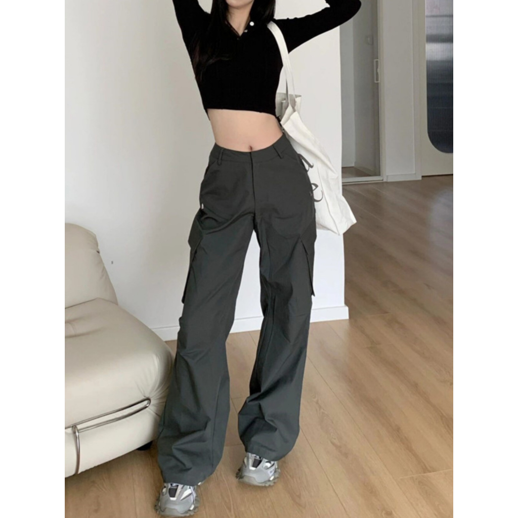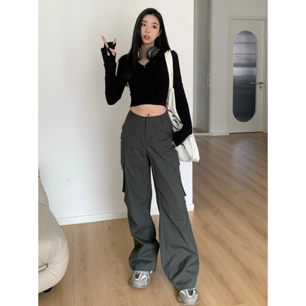 梨型身材必入!工裝褲 涼感褲 女生 褲子 高腰裤 女工裝褲 抽繩工裝褲 顯瘦長褲 美式工裝褲 辣妹 小個子長褲 裤子女圖片色,S|圖片色,M|圖片色,LPantsCHAOO 台北原創服飾品牌