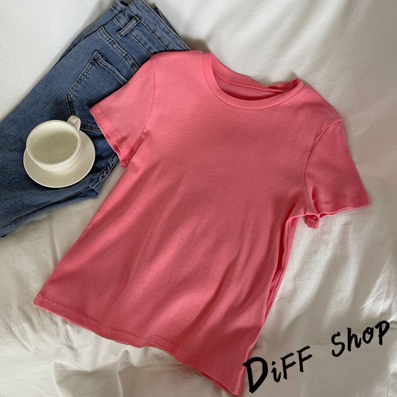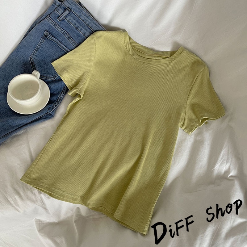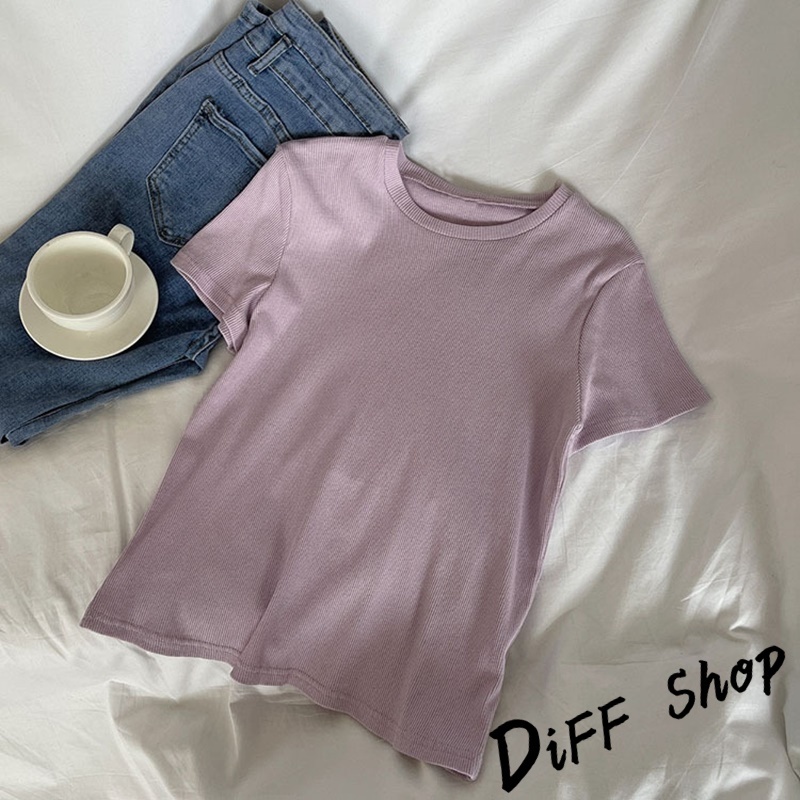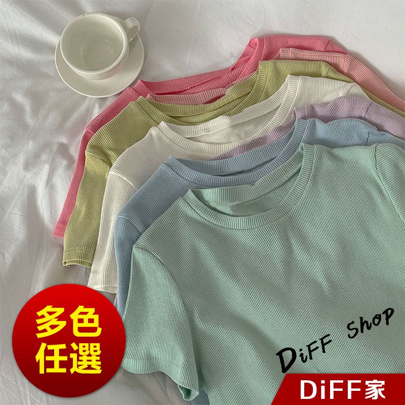 【DIFF】韓版設計感圓領螺紋短版上衣 短袖上衣 短袖t恤 女裝 顯瘦上衣 衣服 寬鬆上衣 素T 短板上衣【T597】【T597】白色|【T597】綠色|【T597】藍色|【T597】黑色|【T597】粉紅色|【T597】豆綠色|【T597】紫色T-shirtsDiFF shop