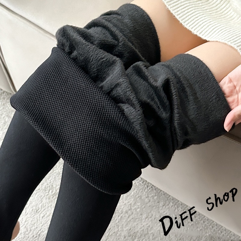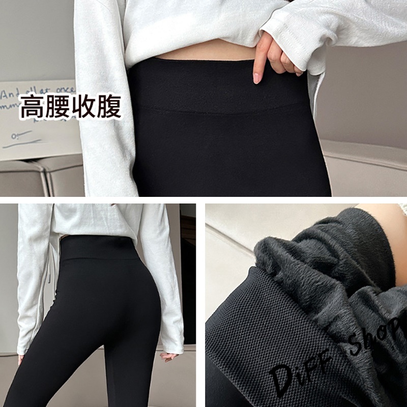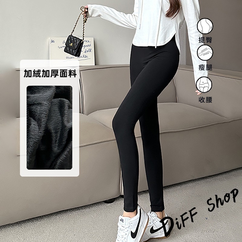 【DIFF】韓版黑色內刷毛顯瘦緊身褲 褲子 長褲 休閒褲 女裝 高腰褲 黑褲 發熱褲 保暖褲【P359】