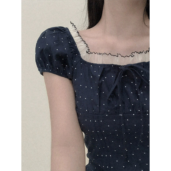 Codibook|韓國 J-BLIN 髮帶點點荷葉邊方領女衫[預購]雪紡襯衫 女裝象牙白|紅色|海軍藍Shirts & BlousesCodibook 韓國女裝購物平台