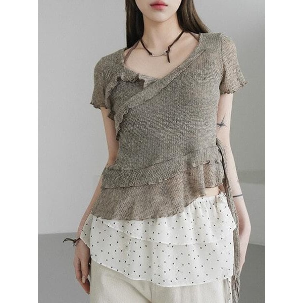 Codibook|韓國 binary01 立體層次荷葉邊U領短袖上衣[預購]短袖上衣 T恤 女裝米褐色,FREE|咖啡色(棕色),FREE|深灰色,FREET-shirtsCodibook 韓國女裝購物平台