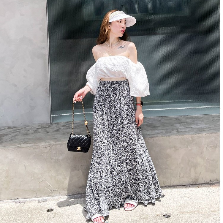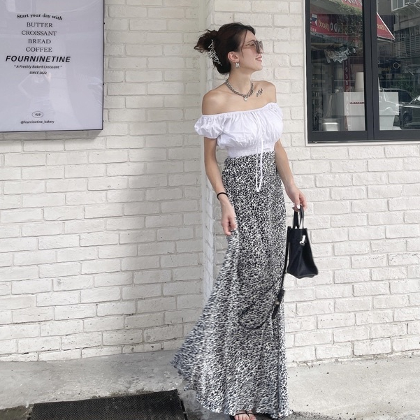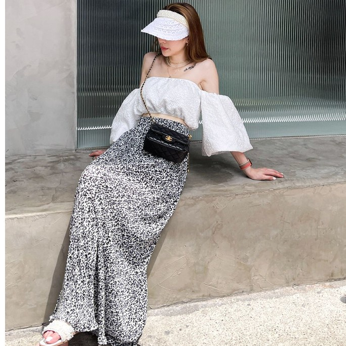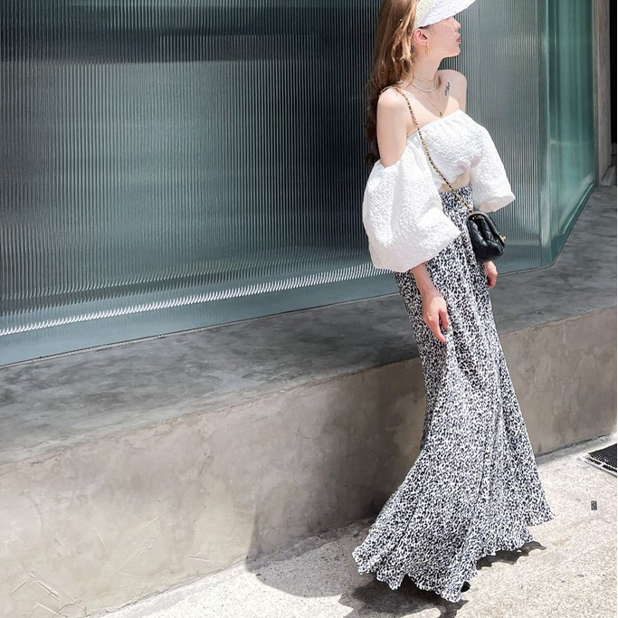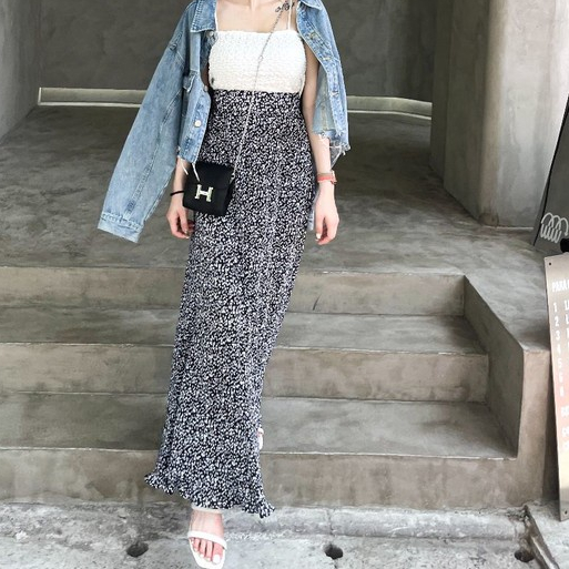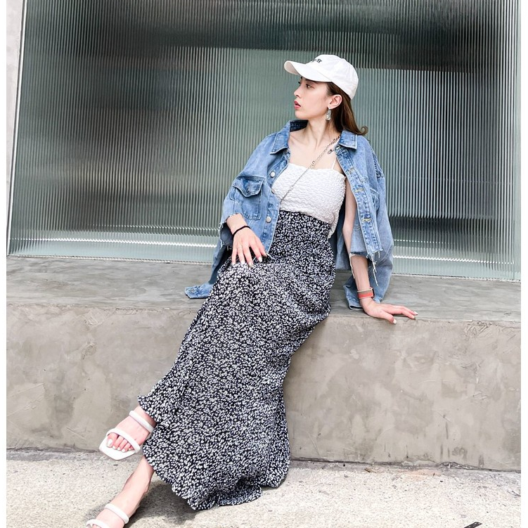 【DOEFF超商免運】碎花百褶飄逸長裙 高腰長裙 A字裙 蛋糕裙 顯瘦長裙 海島 裙子女 孕婦裝 氣質 大尺碼 魚尾裙黑色|白色DOE.FF 朵伊芙