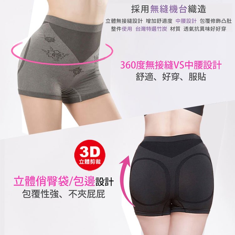 台灣製 加大款 加大尺寸 竹炭四角褲 竹炭內褲 女生內褲 一體成型內褲 竹炭抑菌消臭中腰無痕四角褲加大尺寸-竹炭灰/1件|加大尺寸-竹炭黑/1件PantiesDK大王旗艦店