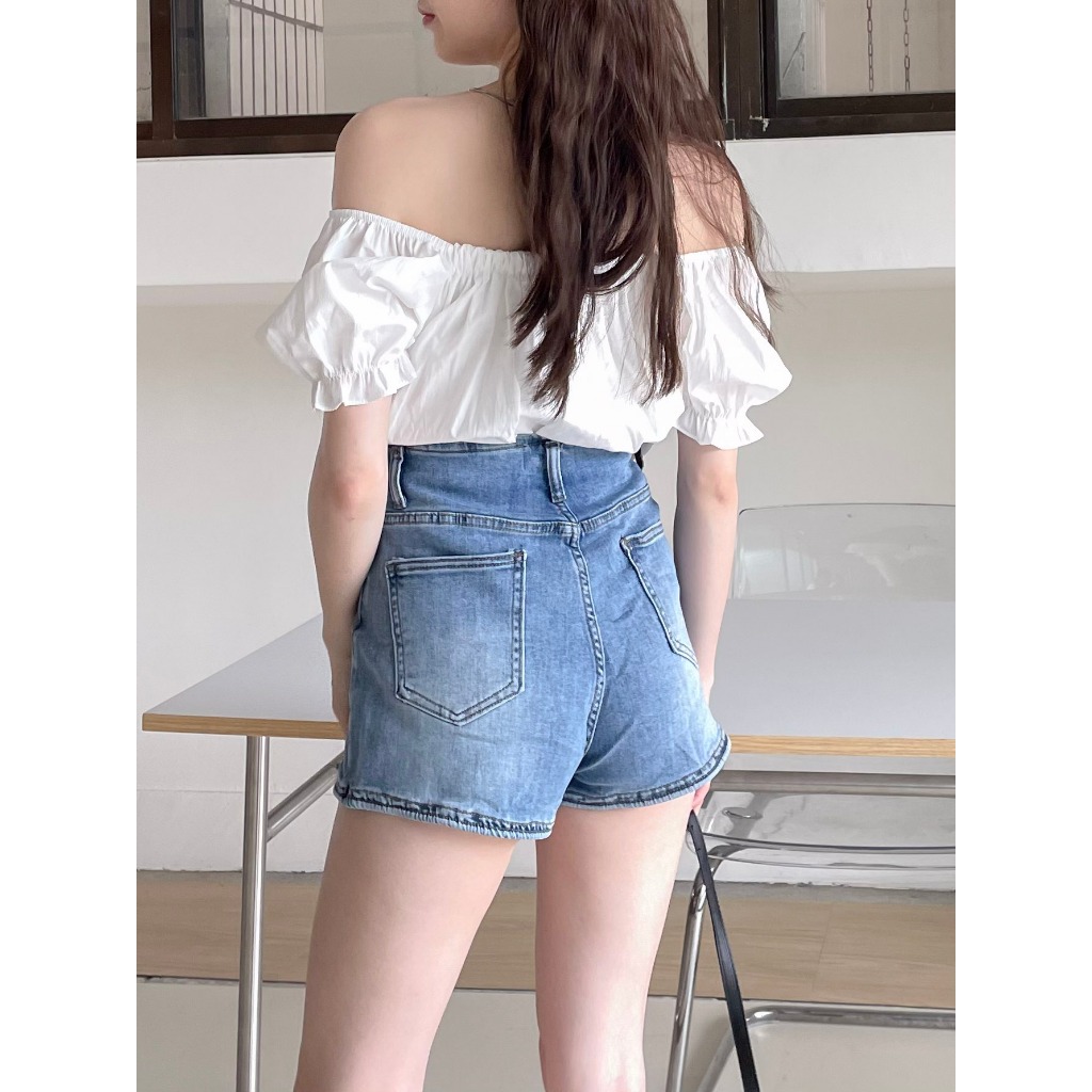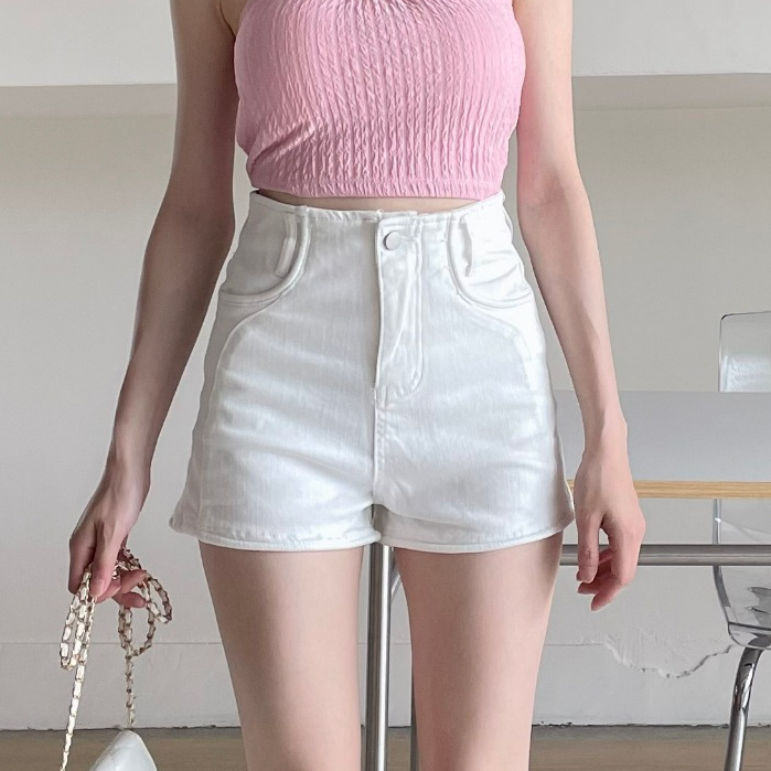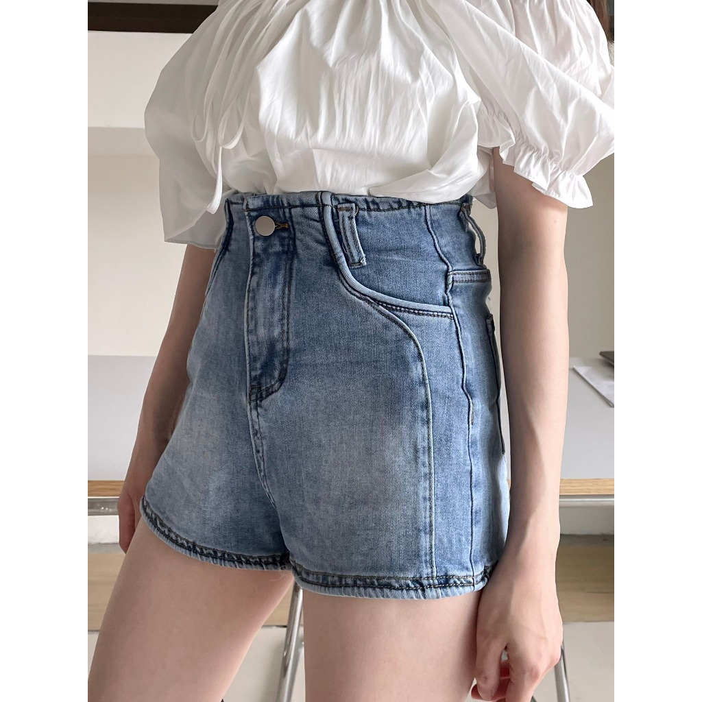【DOEFF】 單釦線條合身牛仔短褲 牛仔褲 牛仔短褲 短褲女 合身短褲 包臀短褲 顯瘦黑,S|黑,M|黑,L|白,S|白,M|白,L|藍,S|藍,M|藍,LShortsDOE.FF 朵伊芙