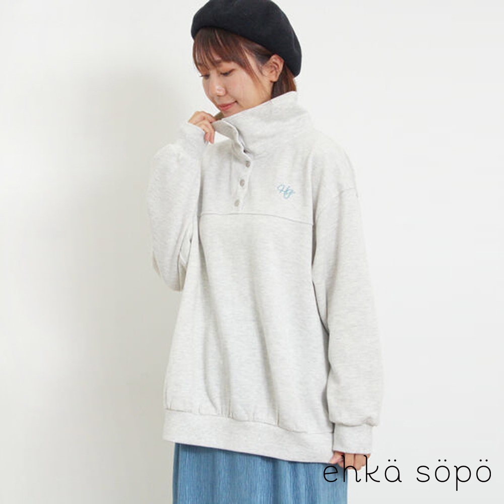 Samansa Mos2 標誌刺繡半排釦溫暖休閒上衣(0F000334910)灰色F|綠色F|深藍色FT-shirtsearth music&ecology Select Store