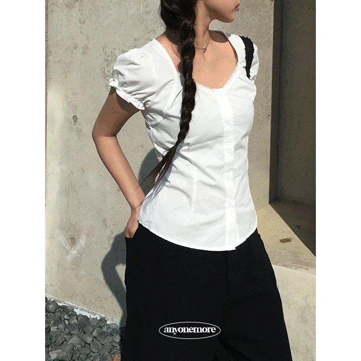 Codibook|韓國 anyonemore 純棉蕾絲澎袖方領短袖襯衫[預購]雪紡襯衫 女裝free,象牙白Shirts & BlousesCodibook 韓國女裝購物平台