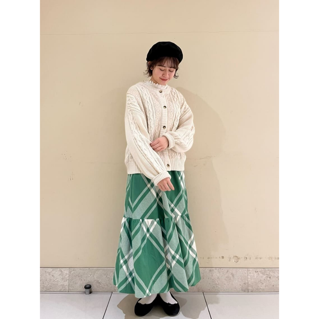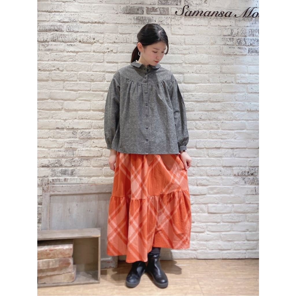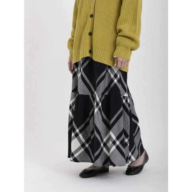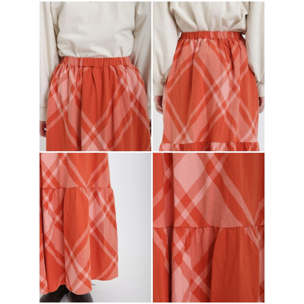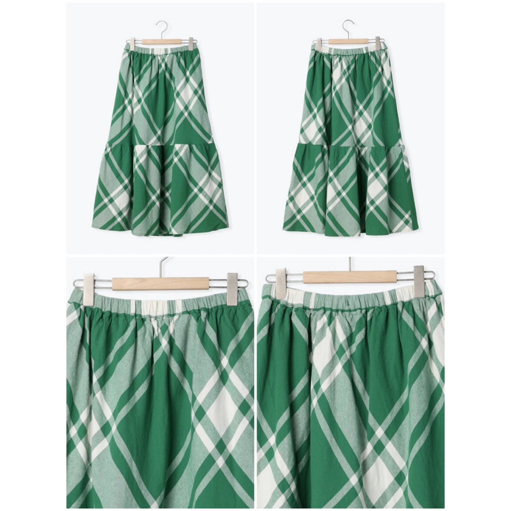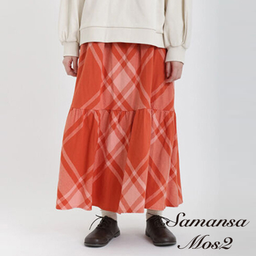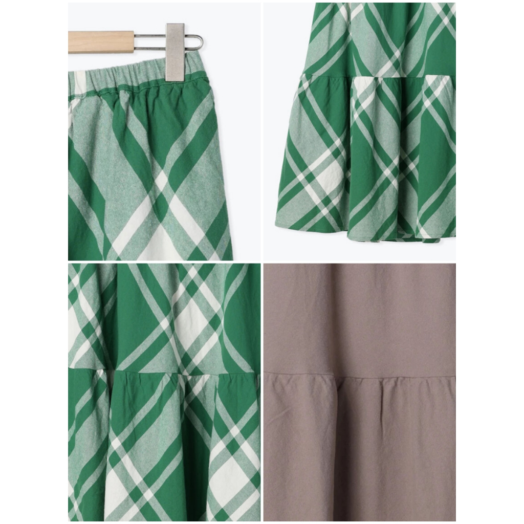 Samansa Mos2 素面/菱格紋圖案棉質分層式剪裁長裙(FL31L0L0180)象牙色F|粉紅色F|深咖啡色F|綠色F|黑色Fearth music&ecology Select Store