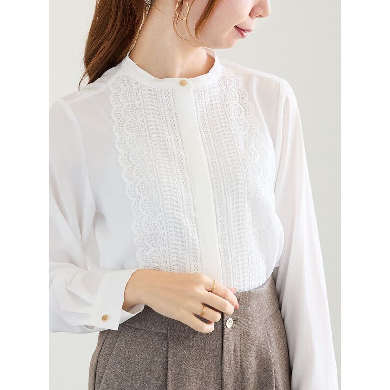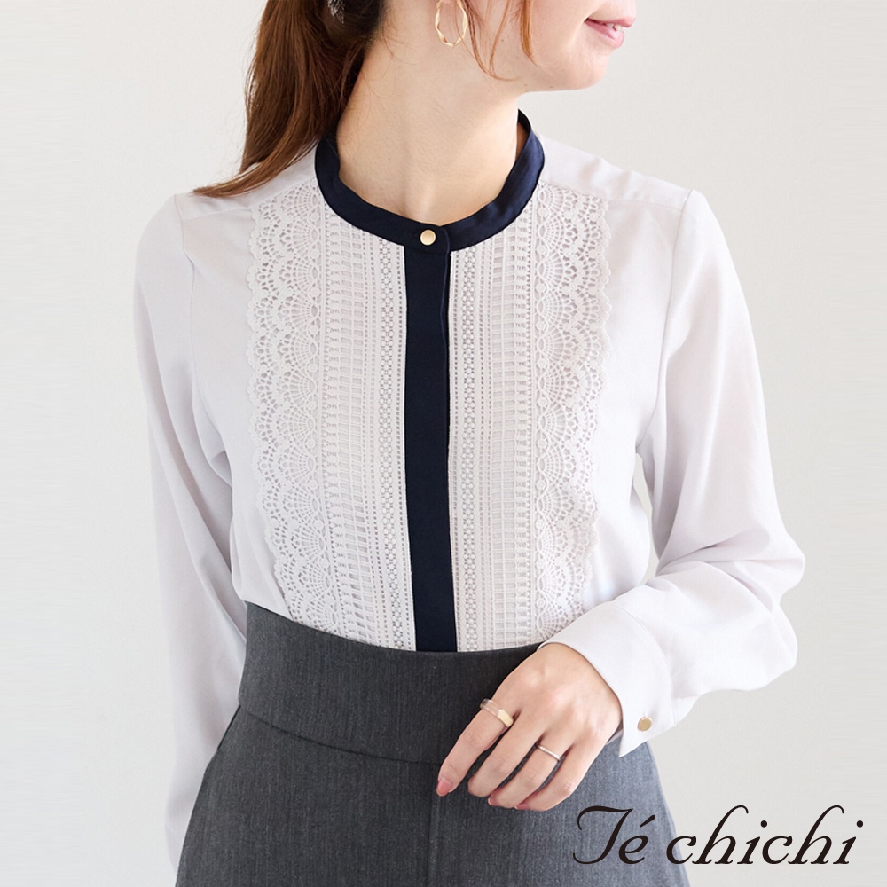 Te chichi 典雅蕾絲扇貝邊金釦圓領襯衫(0F000226310)本白F|灰色F|炭灰色FShirts & Blousesearth music&ecology Select Store