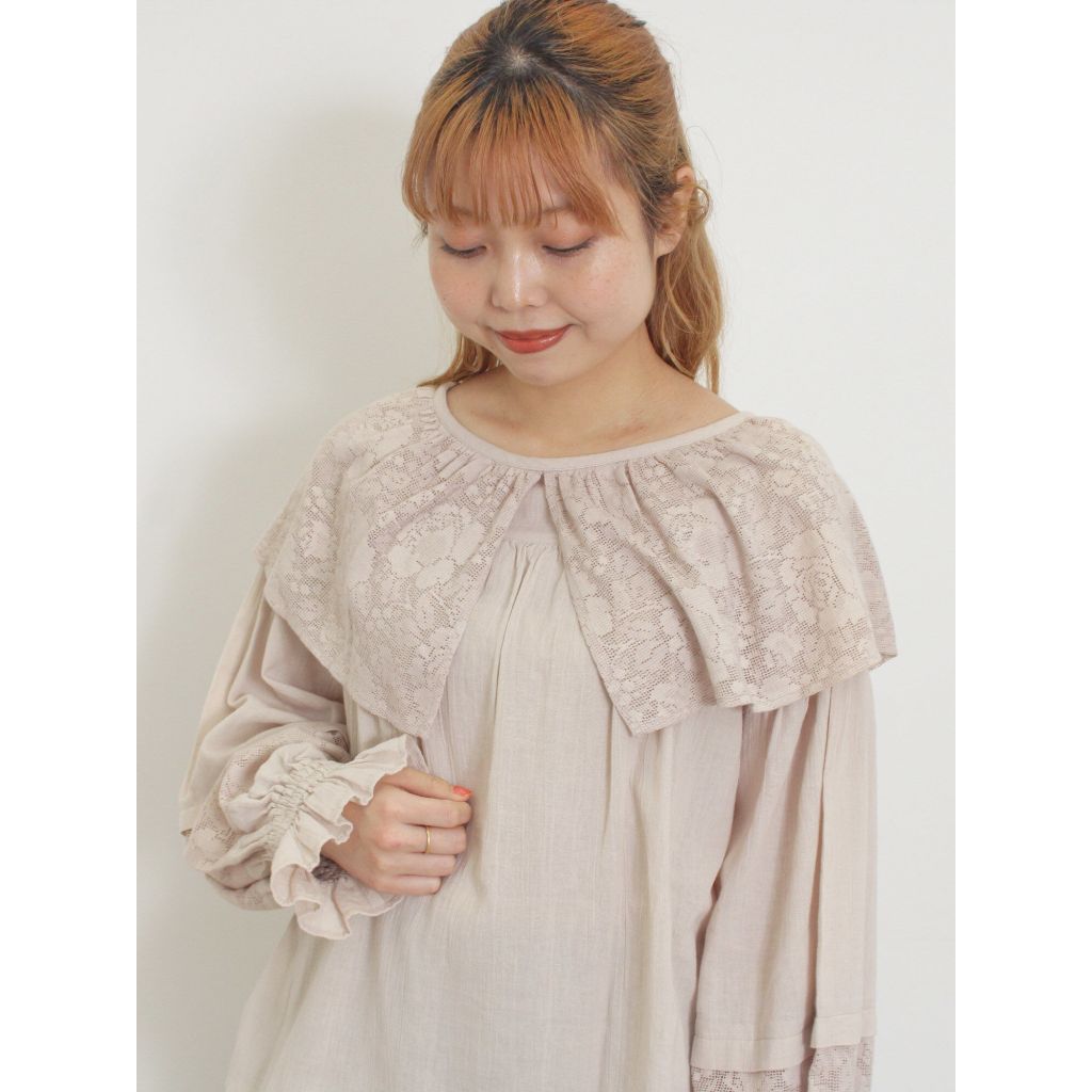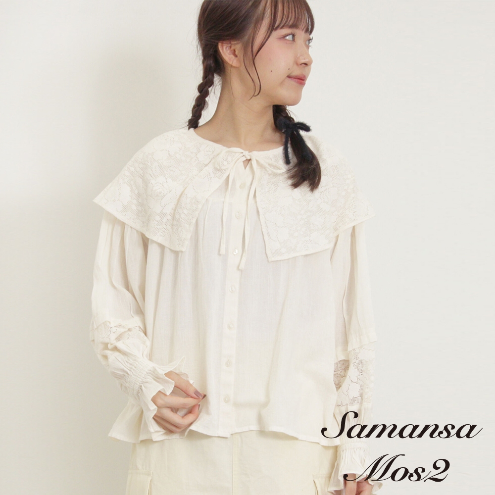 Samansa Mos2 蕾絲大領片糖果袖排釦襯衫(0F000556610)象牙色F|灰色F|炭灰色FShirts & Blousesearth music&ecology Select Store