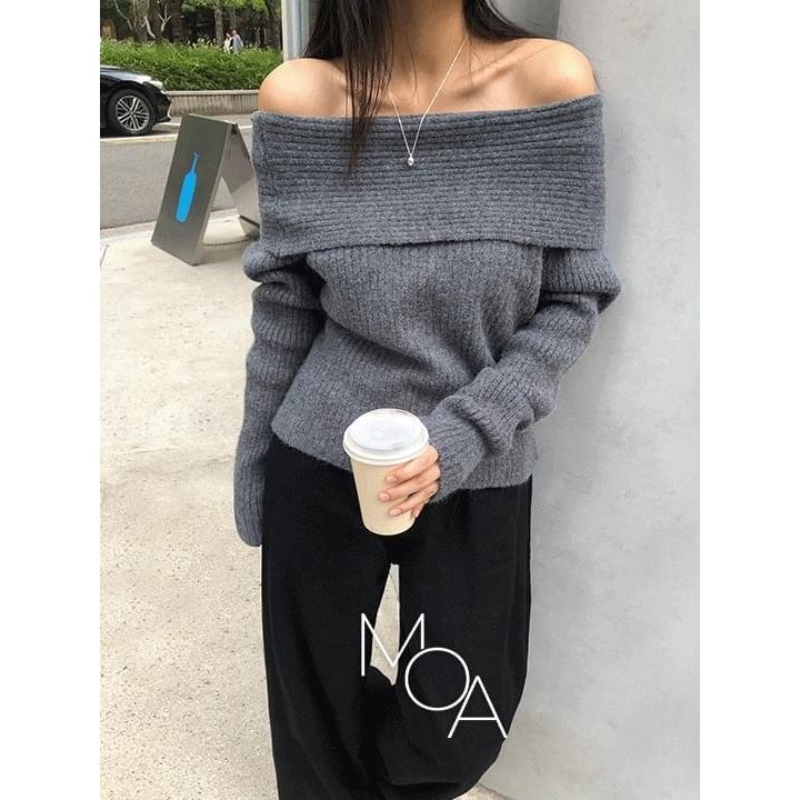 Codibook|韓國 moaround 粗花呢露肩落地針織上衣[預購]針織衫 毛衣 女裝咖啡色,FREE|深灰色,FREE|黑色,FREE|象牙白,FREECodibook 韓國女裝購物平台
