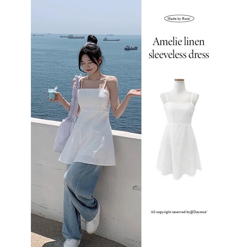 Codibook|韓國 Dayroze 艾美麗亞麻背心洋裝[預購]迷你短洋裝 女裝象牙白|黑色Codibook 韓國女裝購物平台