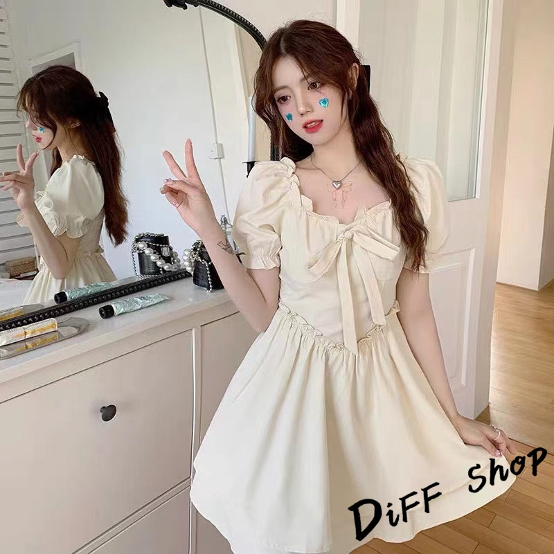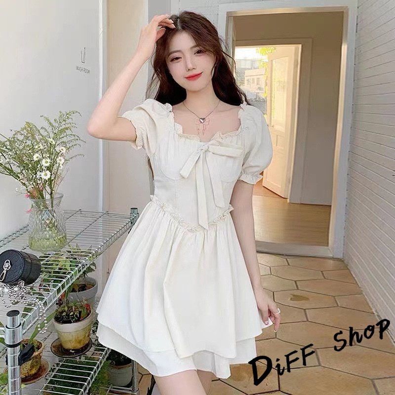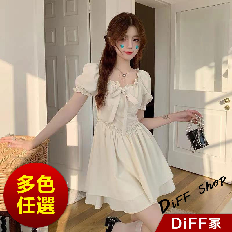 【DIFF】韓版法式方領花邊泡泡袖連衣裙 洋裝 連身裙 上衣 套裝 短袖上衣 短袖t恤 女裝 裙裝 短袖洋裝【S261】
