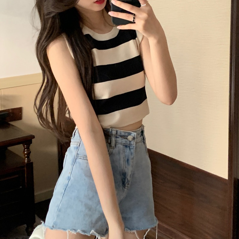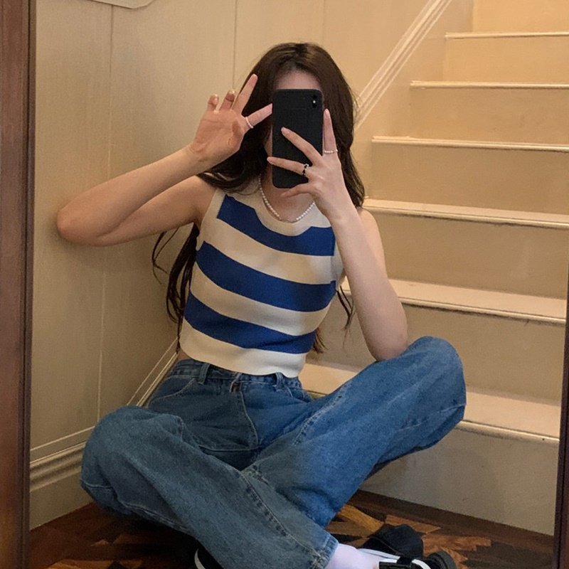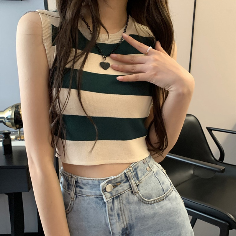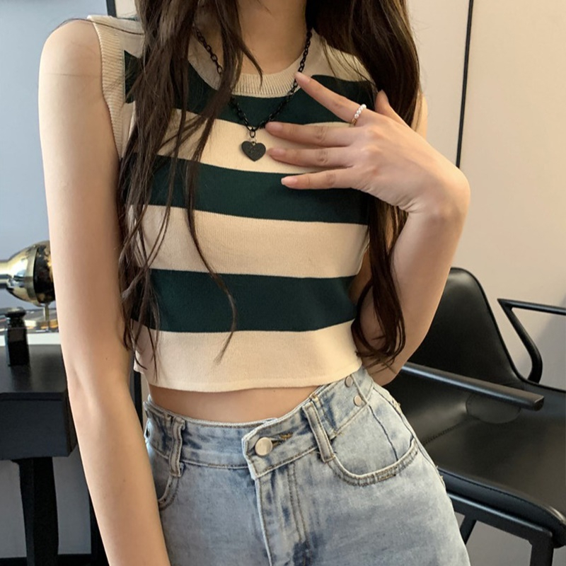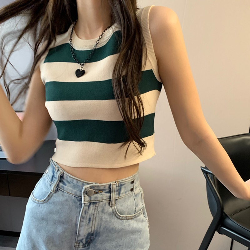 【DIFF】韓版設計感針織條紋短版背心 上衣 小可愛 女裝 背心女 衣服 短版上衣 短板上衣【V255】【V255】卡其色|【V255】淺藍|【V255】木綠色|【V255】黑色Tanks & CamisolesDiFF shop