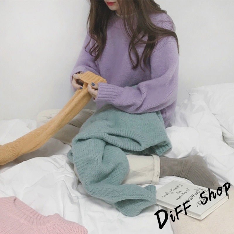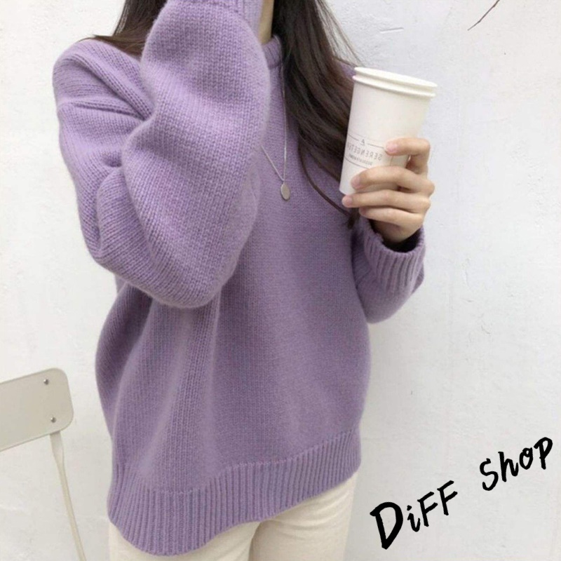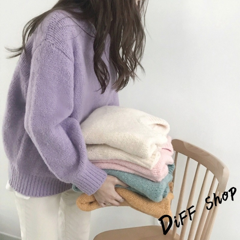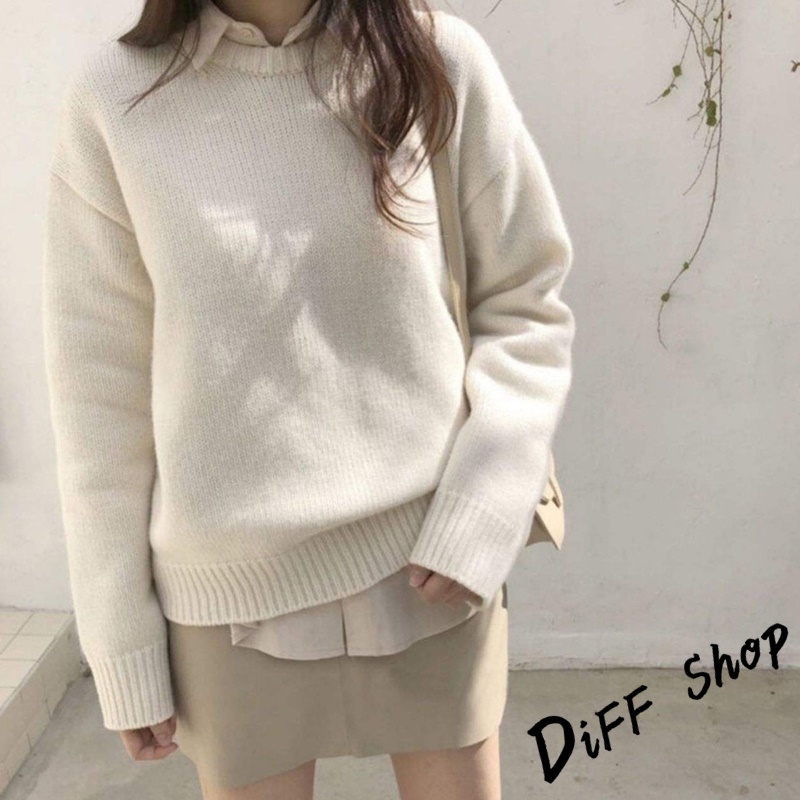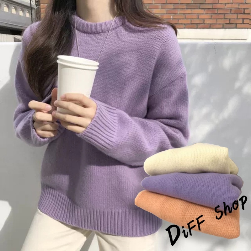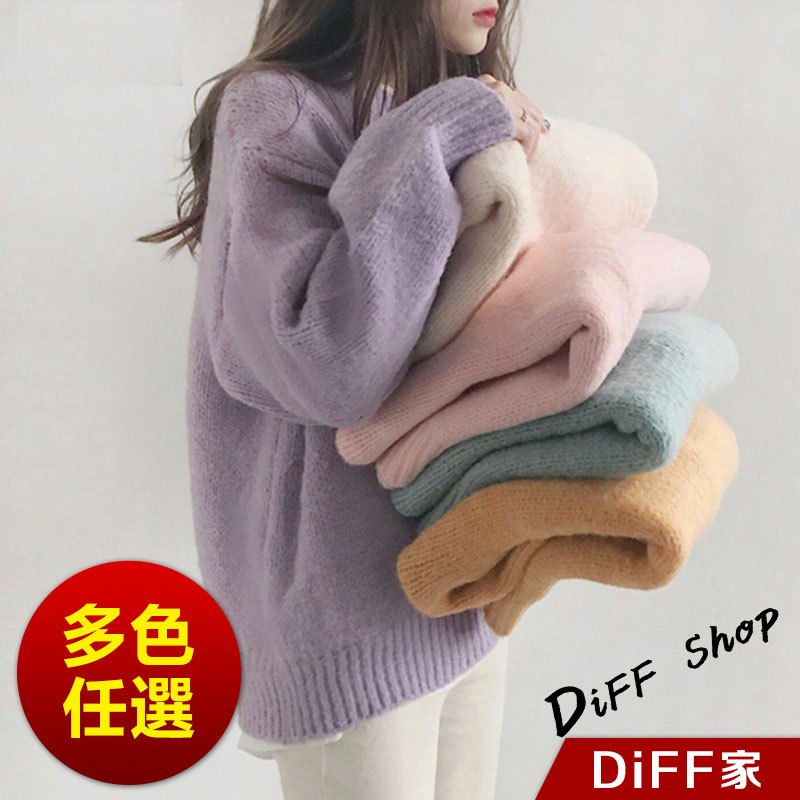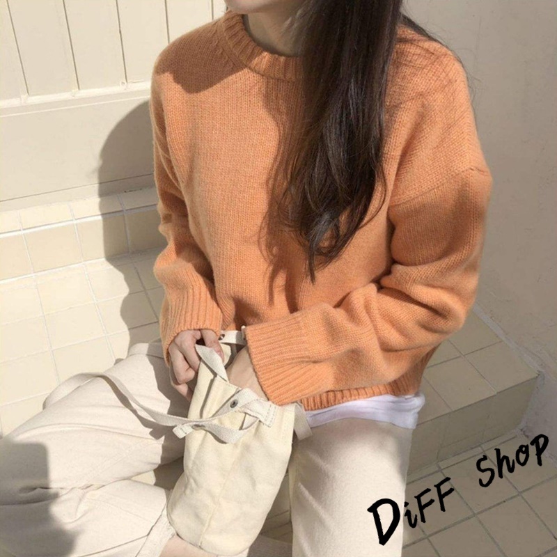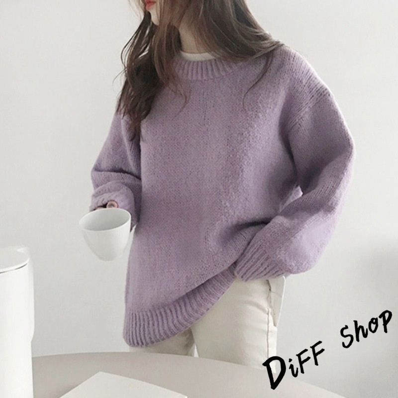 【DIFF】韓版寬鬆慵懶風圓領毛衣 針織上衣 長袖上衣 衣服 長袖t恤 保暖上衣 冬天女裝 秋冬女裝 發熱衣【W560】【W560】橘色|【W560】黑色|【W560】白色|【W560】紫色|【W560】杏色DiFF shop