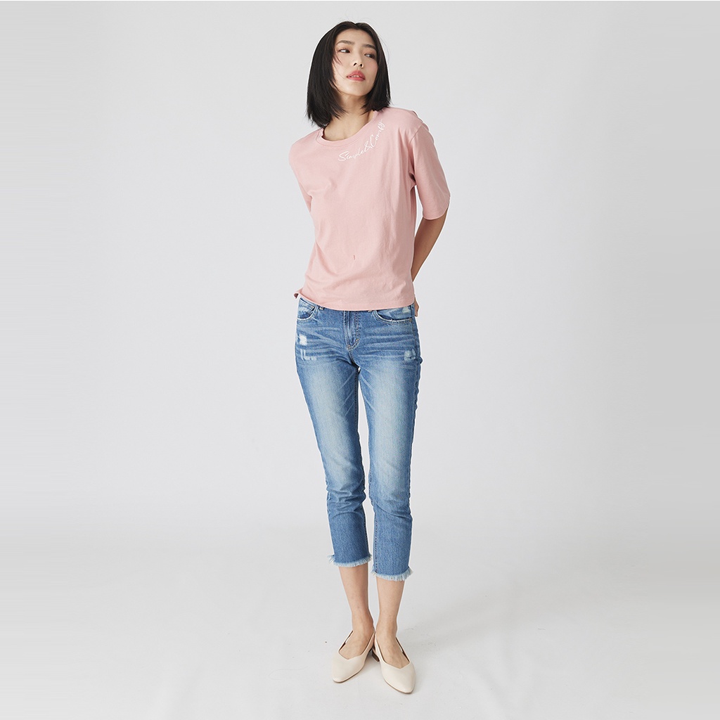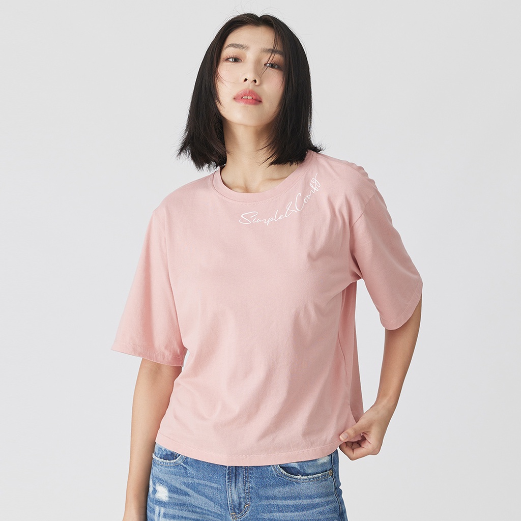 【ERSS】女裝 短袖 女生 t恤 短袖上衣 MIT 春日 日常 草寫 印花T 桃紅【K70292】S|M|LT-shirtsE.R.S.S.