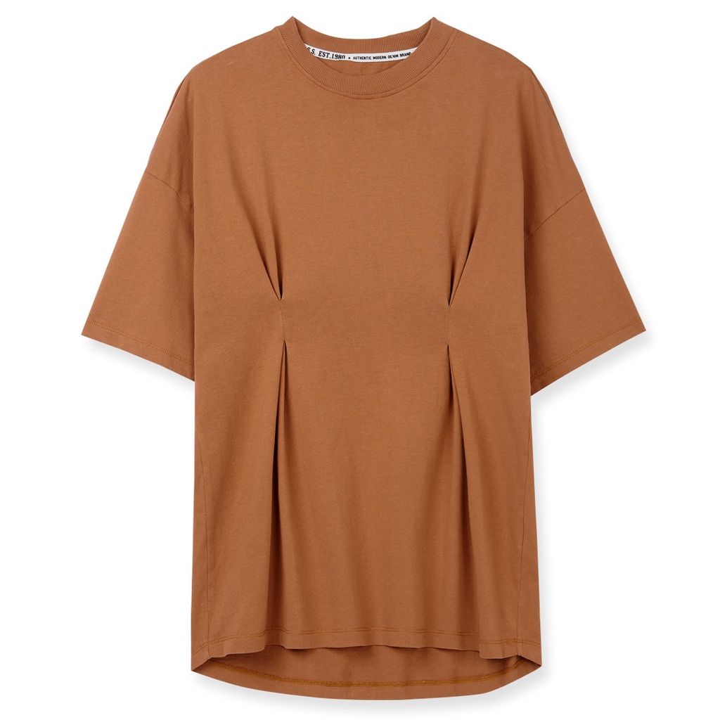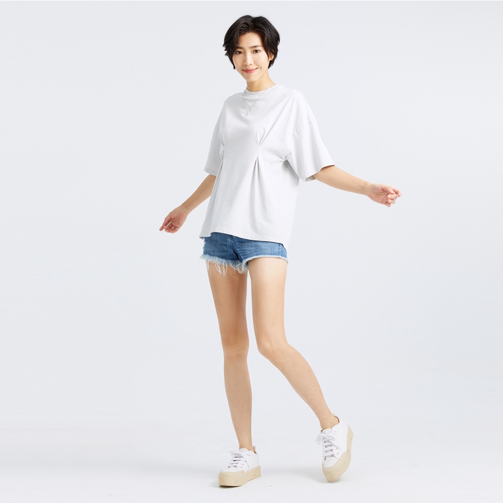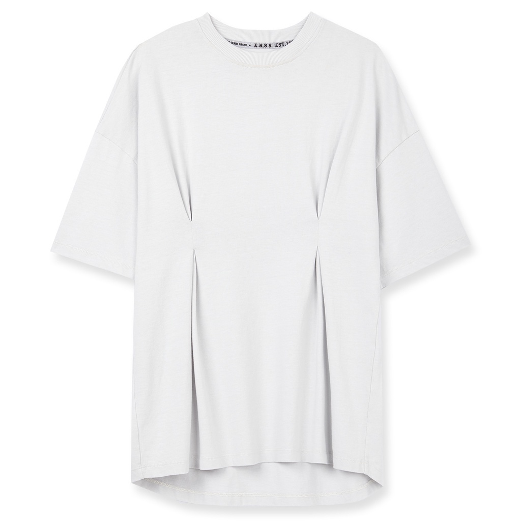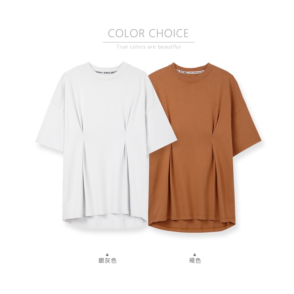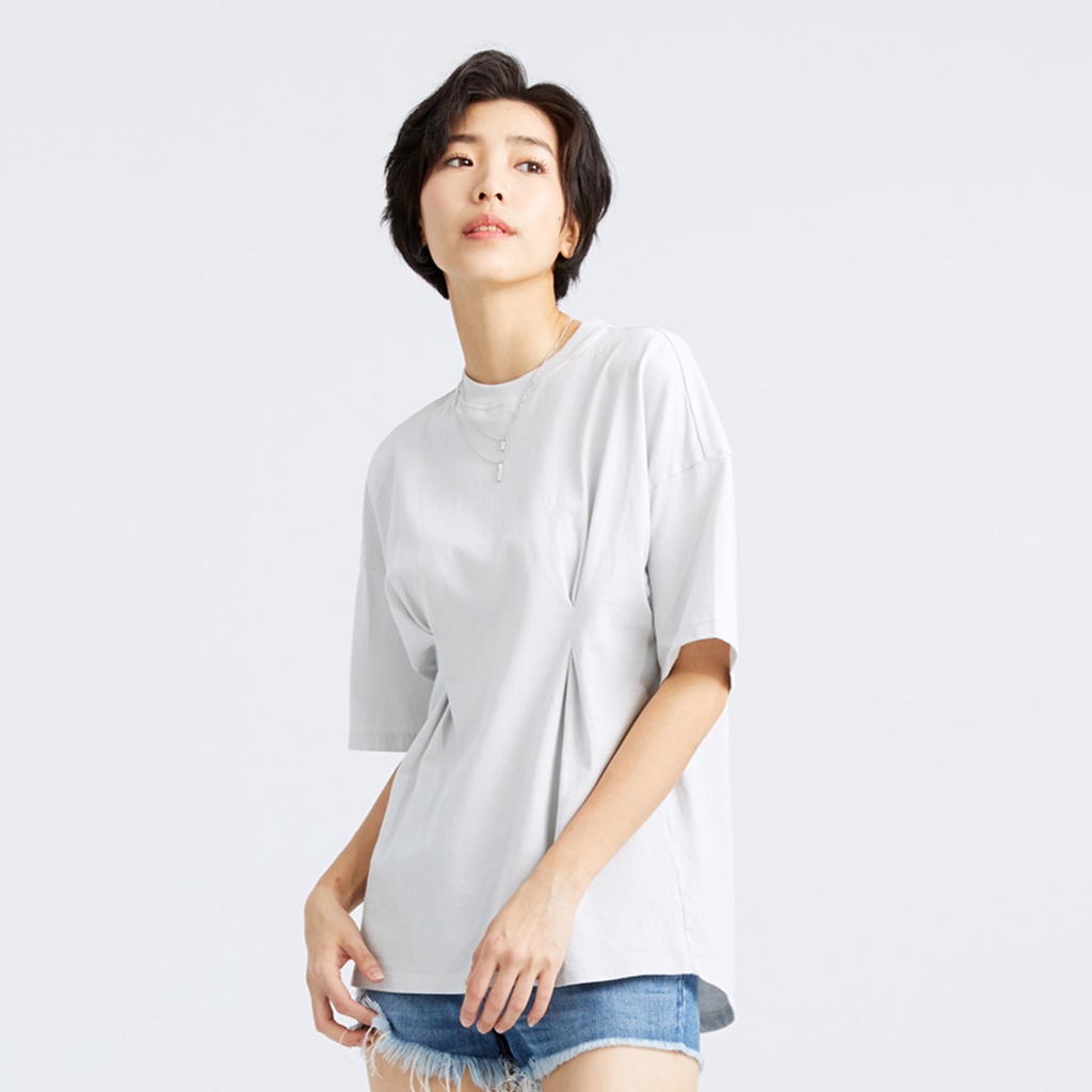 【ERSS】女裝 短袖 女生 t恤 短袖上衣 打褶顯瘦素色百搭純棉圓領T 銀灰色 【K70242】L|XL|S|MT-shirtsE.R.S.S.