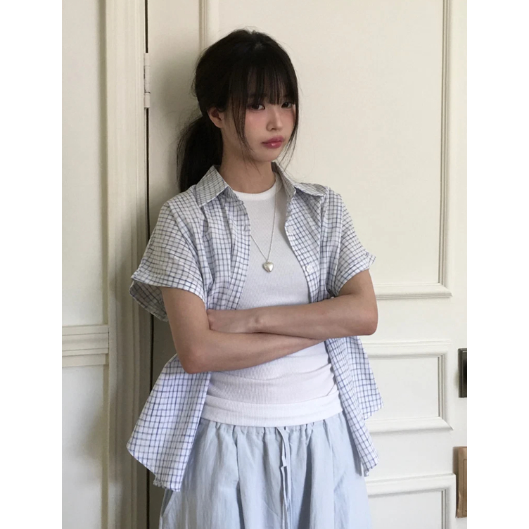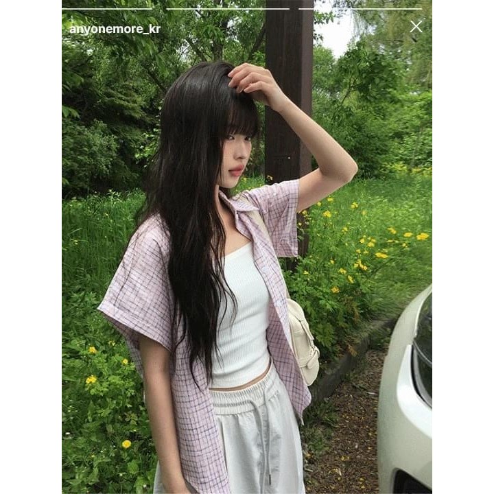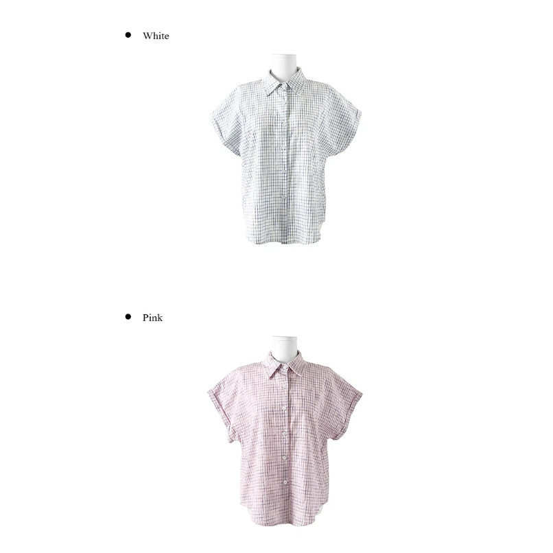 Codibook|韓國 anyonemore 捲袖格紋寬鬆短袖襯衫[預購]短袖上衣 襯衫 女裝free,白色|free,粉紅色T-shirtsCodibook 韓國女裝購物平台