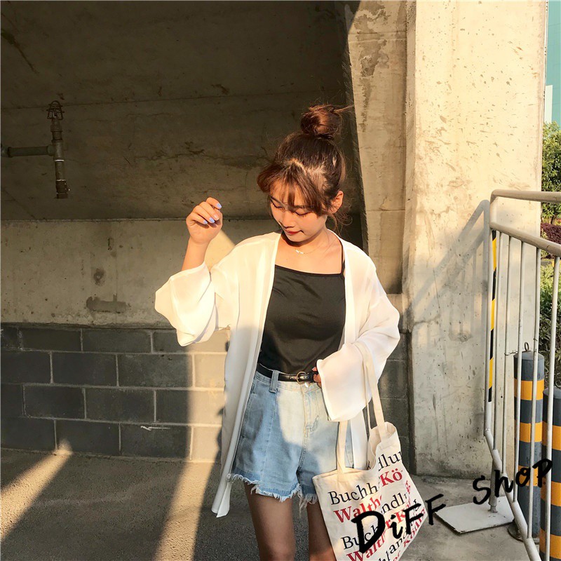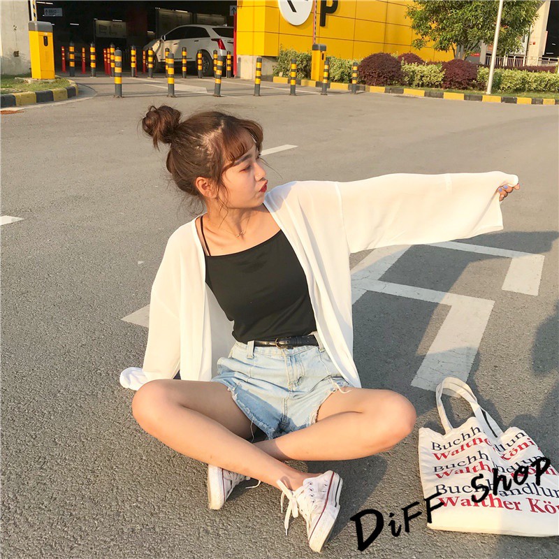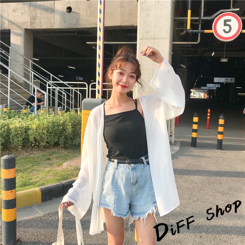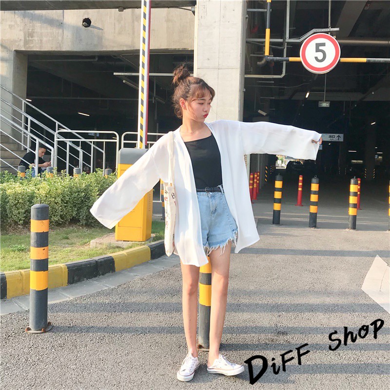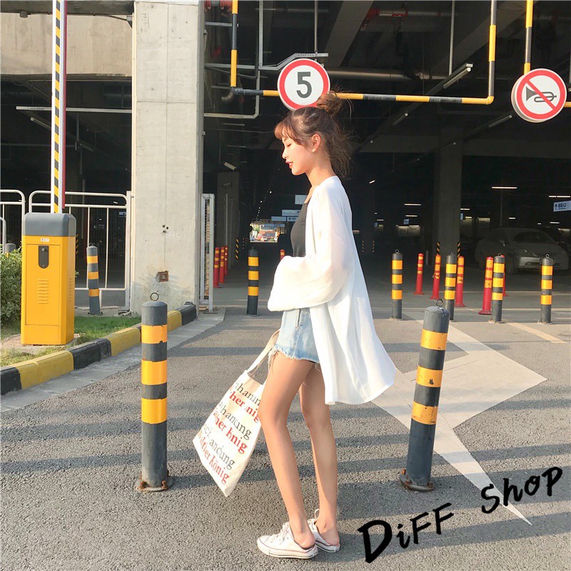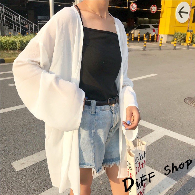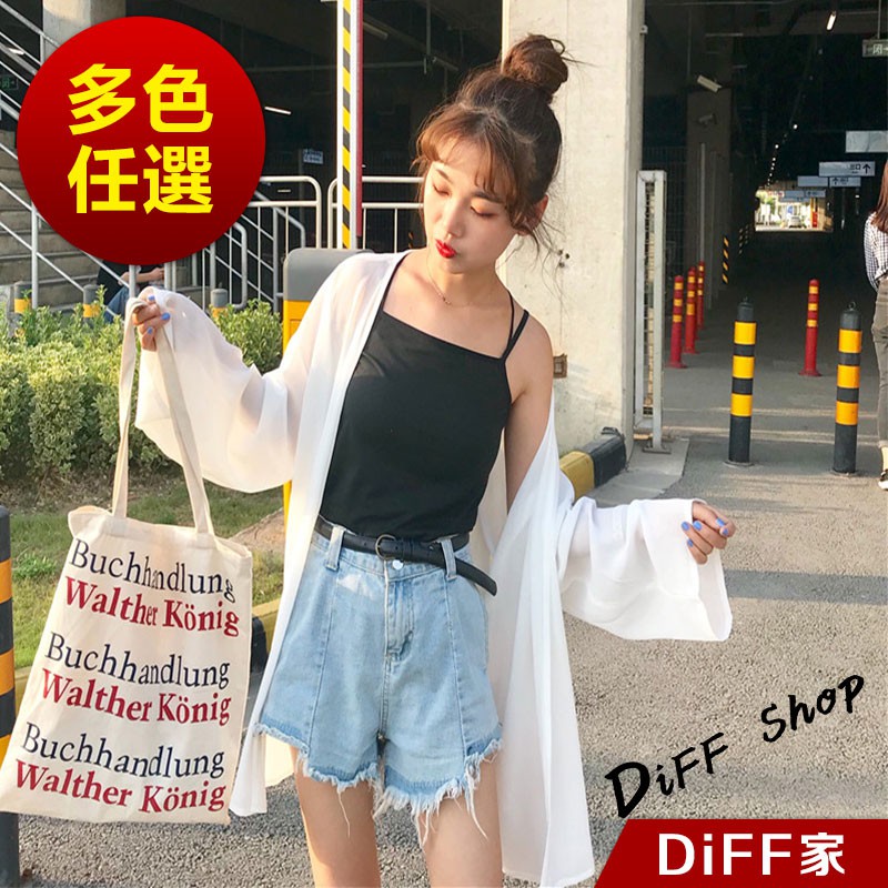 【DIFF】韓版白色薄款寬鬆雪紡罩衫 防曬外套 薄外套 長版外套 休閒外套【J56】【J56】白色|【J56】黑色OthersDiFF shop