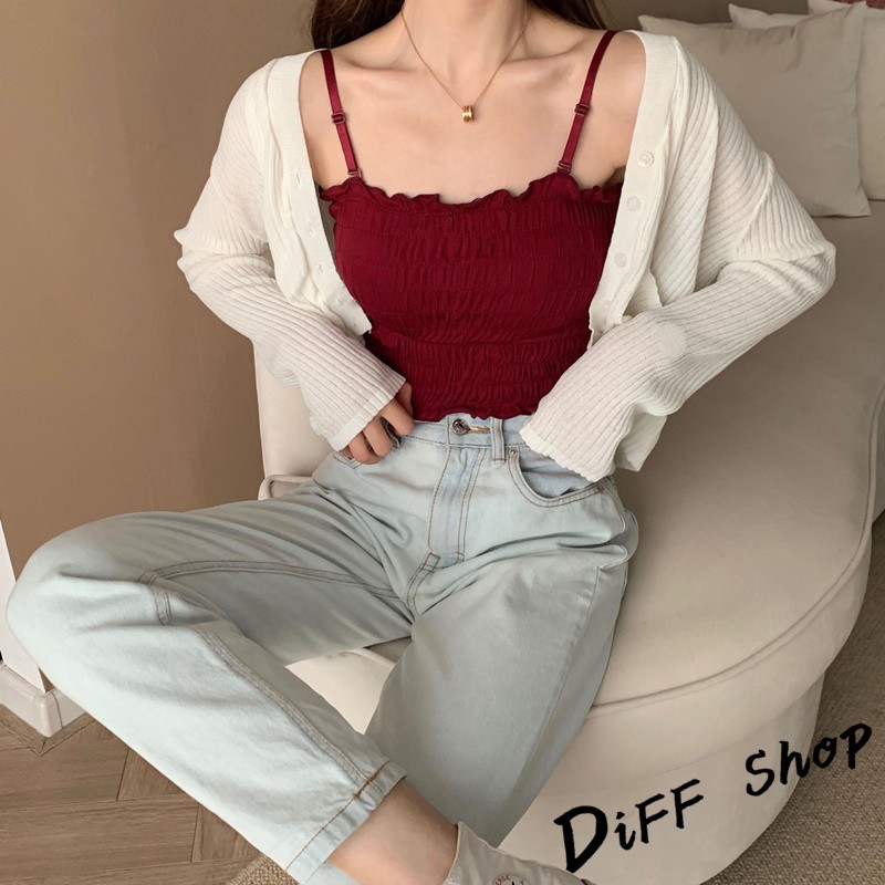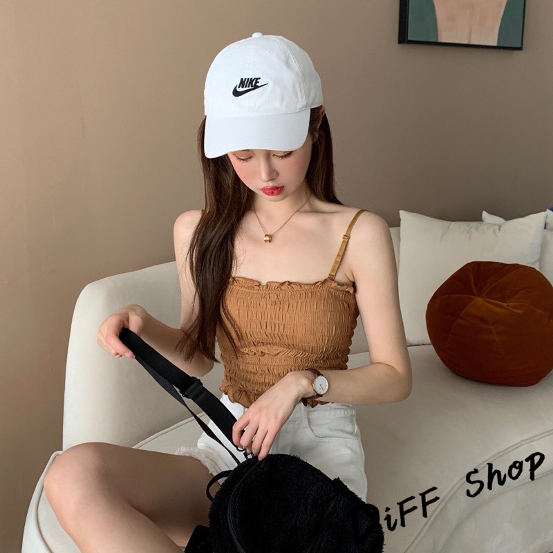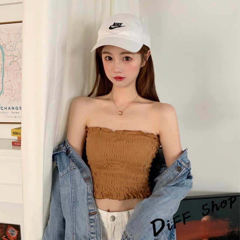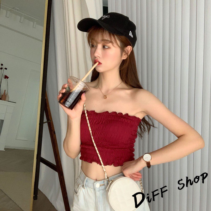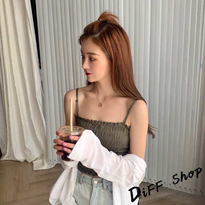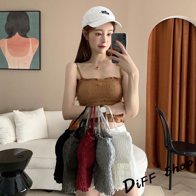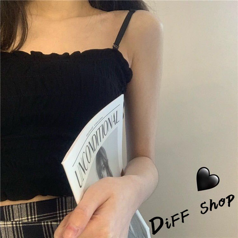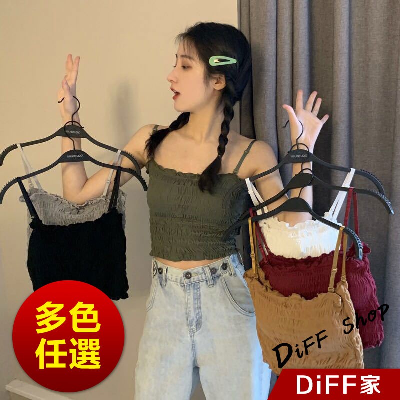 【DIFF】韓版細肩帶一字領設計感皺褶短版背心 免穿內衣 上衣 小可愛 女裝 百搭素色 必備款 衣服【V103】