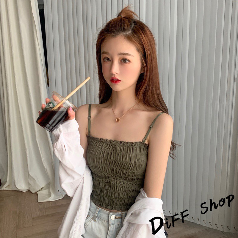 【DIFF】韓版細肩帶一字領設計感皺褶短版背心 免穿內衣 上衣 小可愛 女裝 百搭素色 必備款 衣服【V103】【V103】酒紅|【V103】軍綠|【V103】卡其|【V103】黑色|【V103】白色|【V103】灰色Tanks & CamisolesDiFF shop