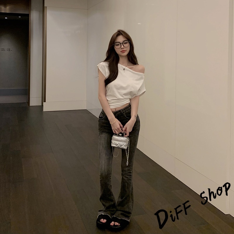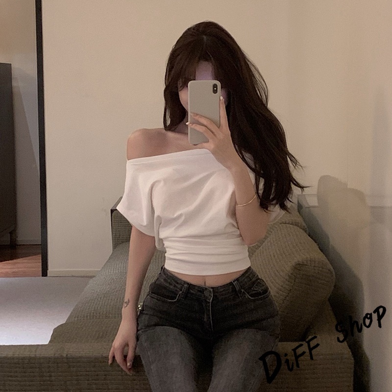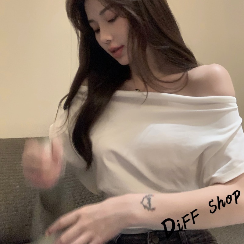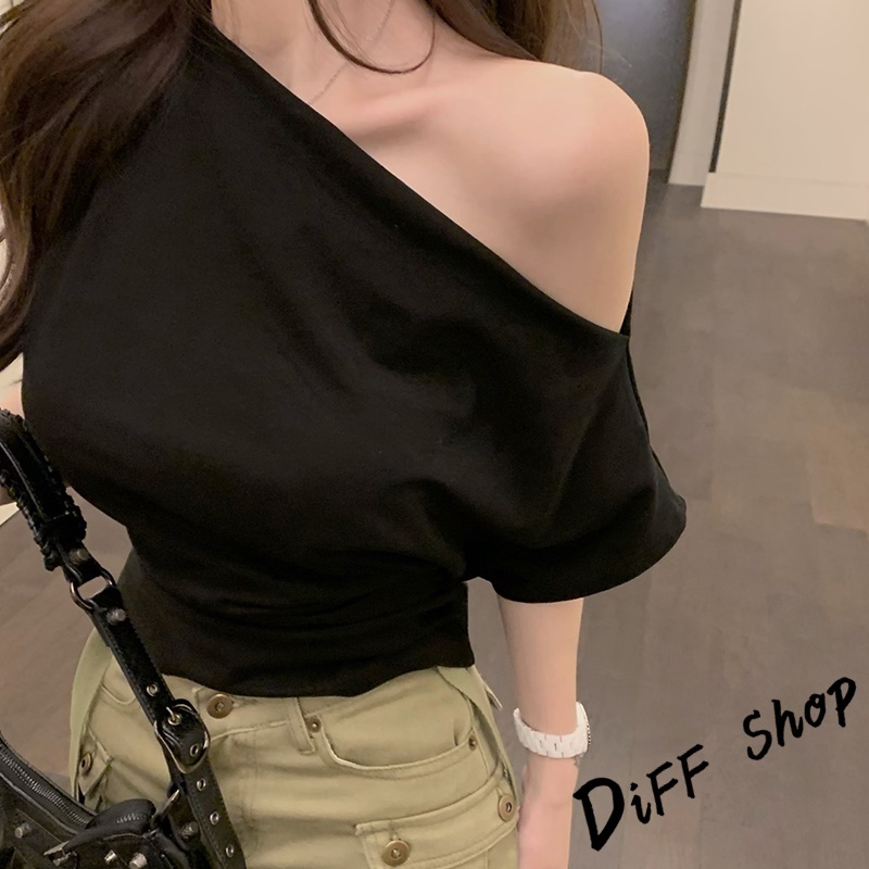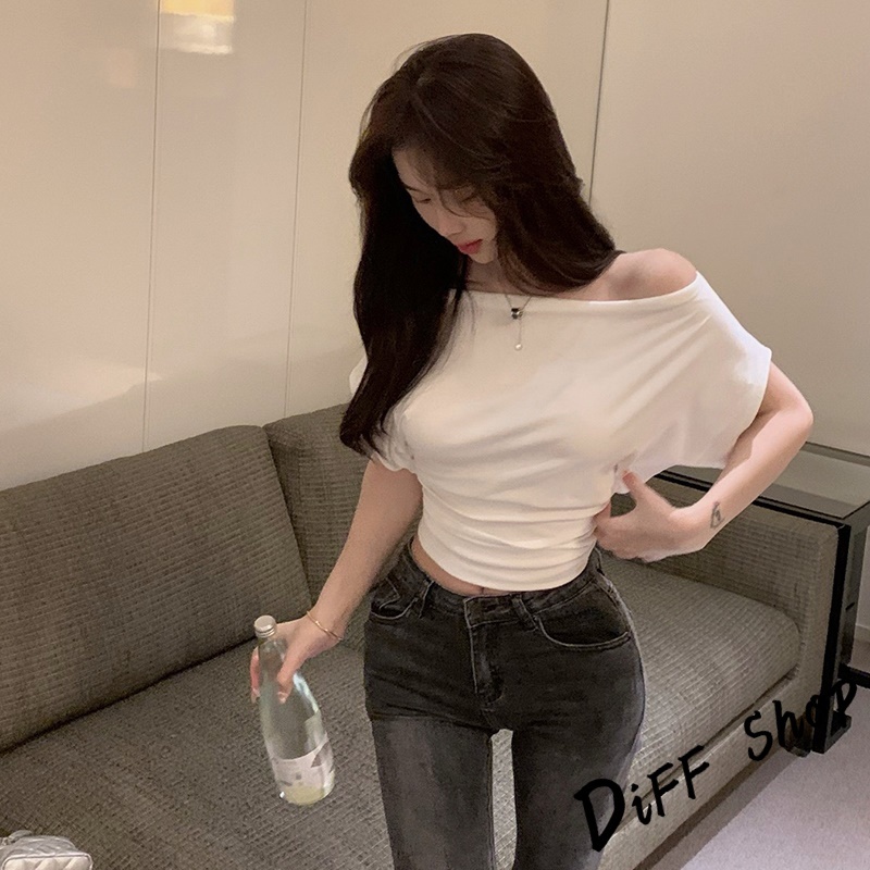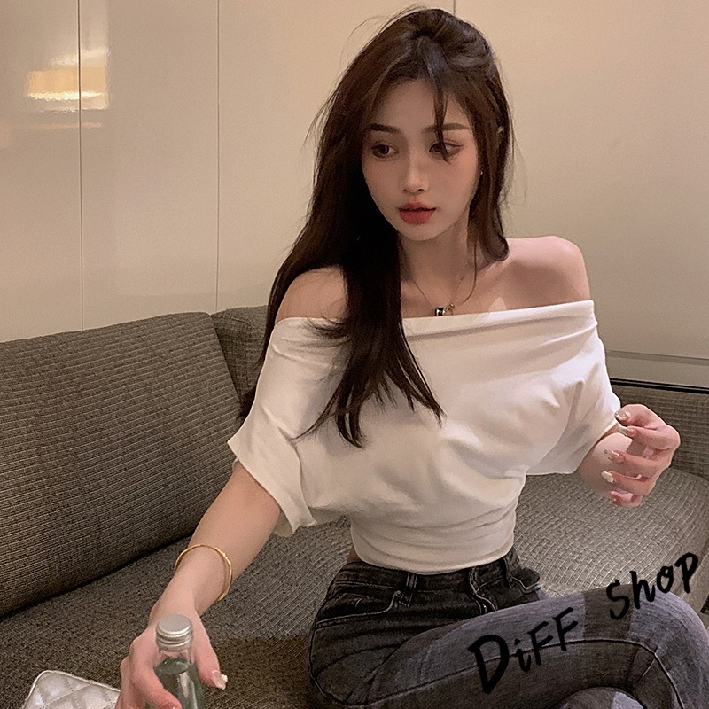 【DIFF】韓版設計感露肩氣質收腰短版上衣 短袖上衣 衣服 夏天女裝 短板上衣 短版t恤 女裝 短袖t恤女【T662】【T662】白色|【T662】黑色T-shirtsDiFF shop