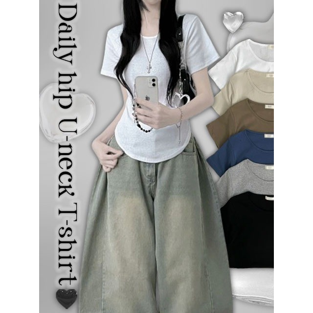 Codibook|韓國 ccomeng 下擺捲邊U領短袖T恤[預購]短袖上衣 T恤 女裝象牙白,one size|米褐色,one size|卡其色,one size|灰色,one size|海軍藍,one size|黑,one sizeT-shirtsCodibook 韓國女裝購物平台