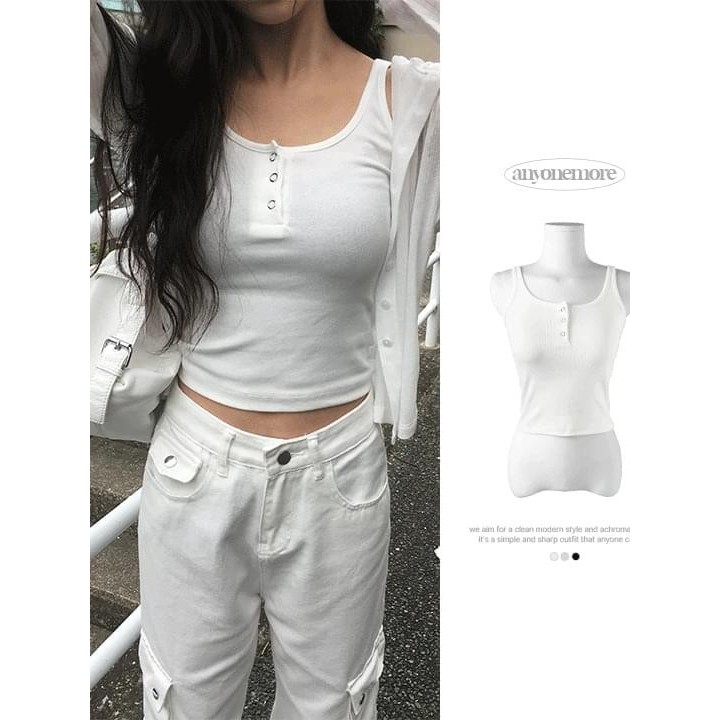 Codibook|韓國 anyonemore 羅森排扣羅紋短版無袖上衣[預購]無袖 T恤 女裝free,象牙白|free,灰色|free,深灰色|free,黑色Tanks & CamisolesCodibook 韓國女裝購物平台