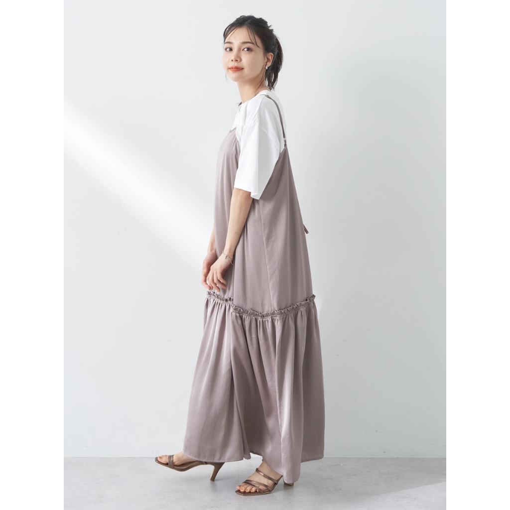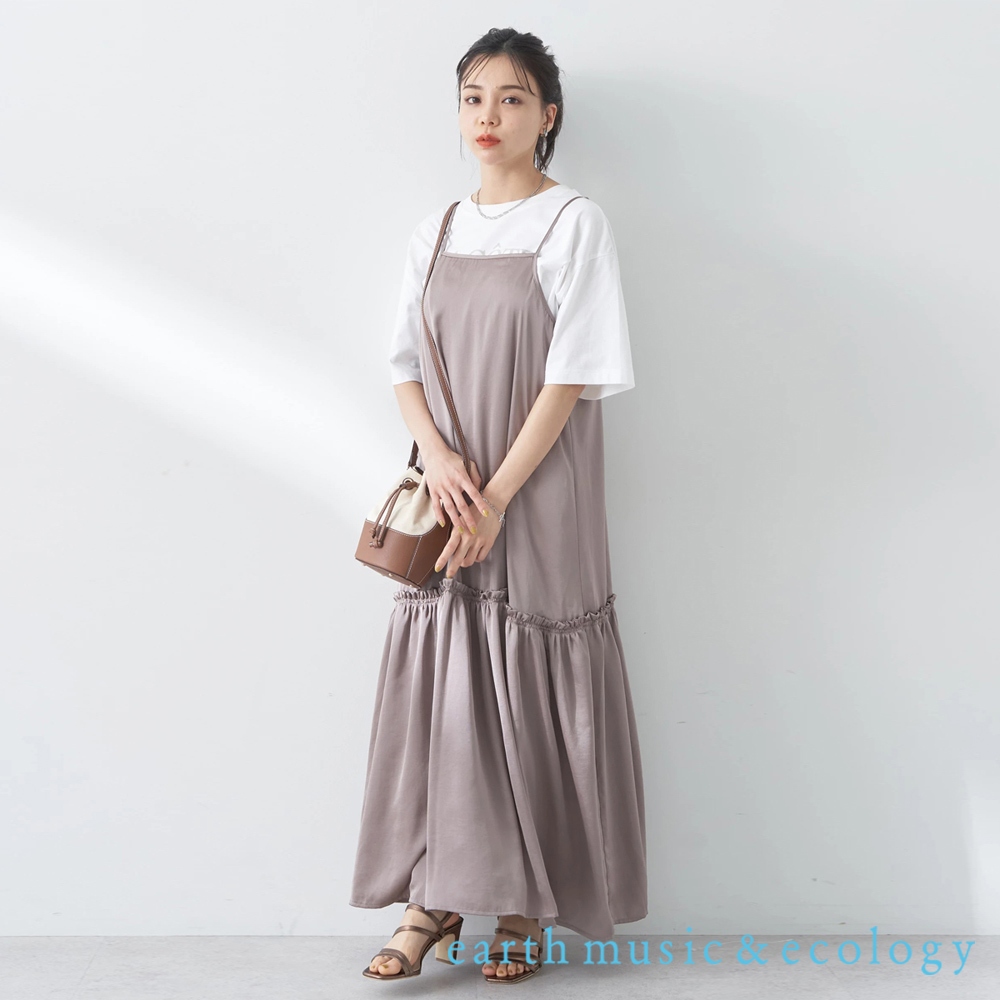 earth music&ecology 緞面光澤感分層平口細肩帶洋裝(1K42L0H0300)