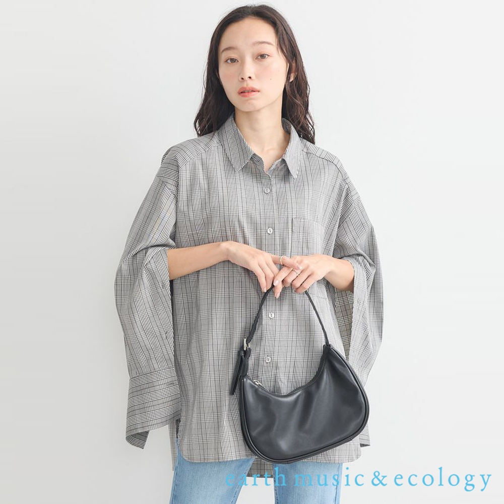 earth music&ecology 2WAY袖開扣斗篷式設計襯衫(1N43L0A0600)本白F|深咖啡色F|細格子FShirts & Blousesearth music&ecology Select Store
