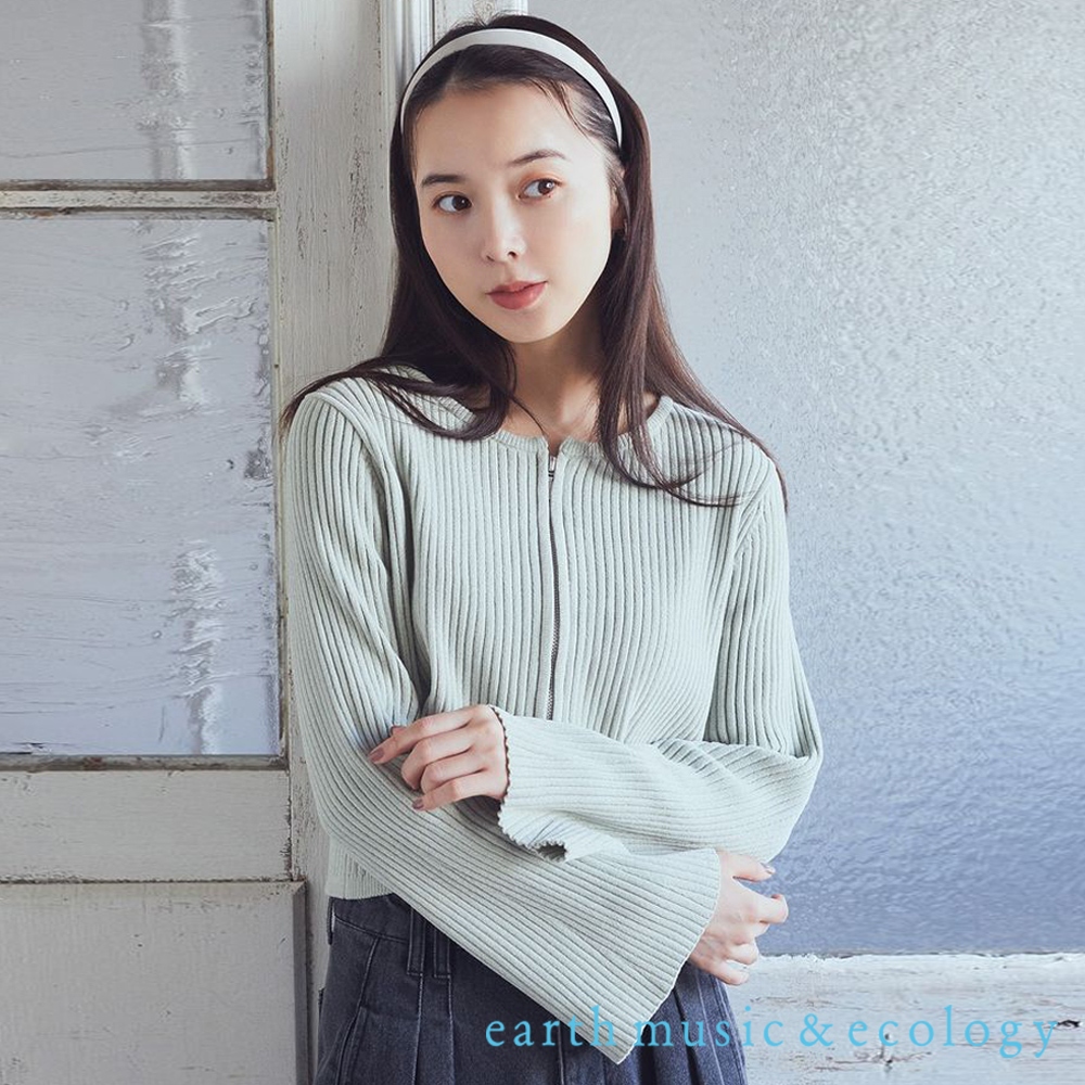 earth music&ecology 雙拉鍊設計羅紋喇叭袖罩衫(1K44L2D0600)象牙色F|灰色F|黑色F|薄荷綠FJacketsearth music&ecology Select Store
