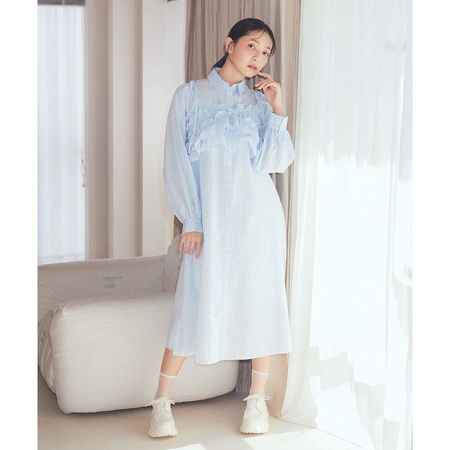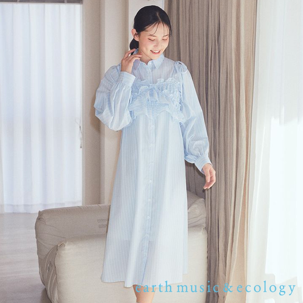 earth music&ecology 【SET ITEM】條紋襯衫洋裝+短版荷葉摺邊吊帶背心(01000117600)本白F|黃色F|藍色Fearth music&ecology Select Store