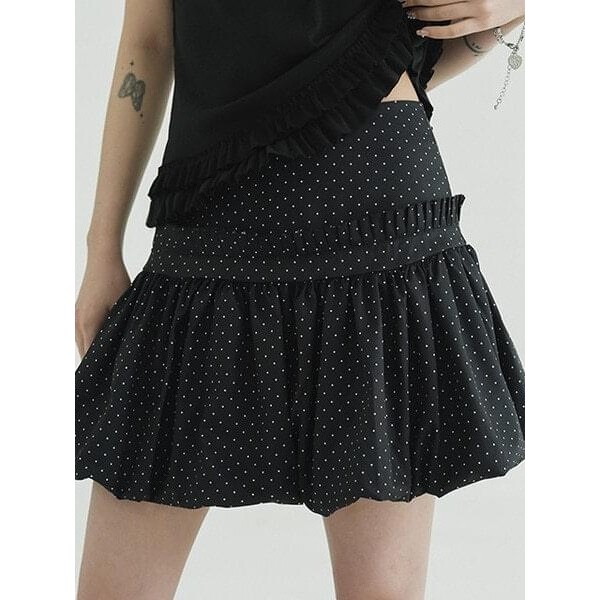 Codibook|韓國 binary01 圓點荷葉邊膨鬆裙[預購]裙子 荷葉邊裙 女裝象牙白,S|黑色,S|象牙白,M|黑色,MCodibook 韓國女裝購物平台