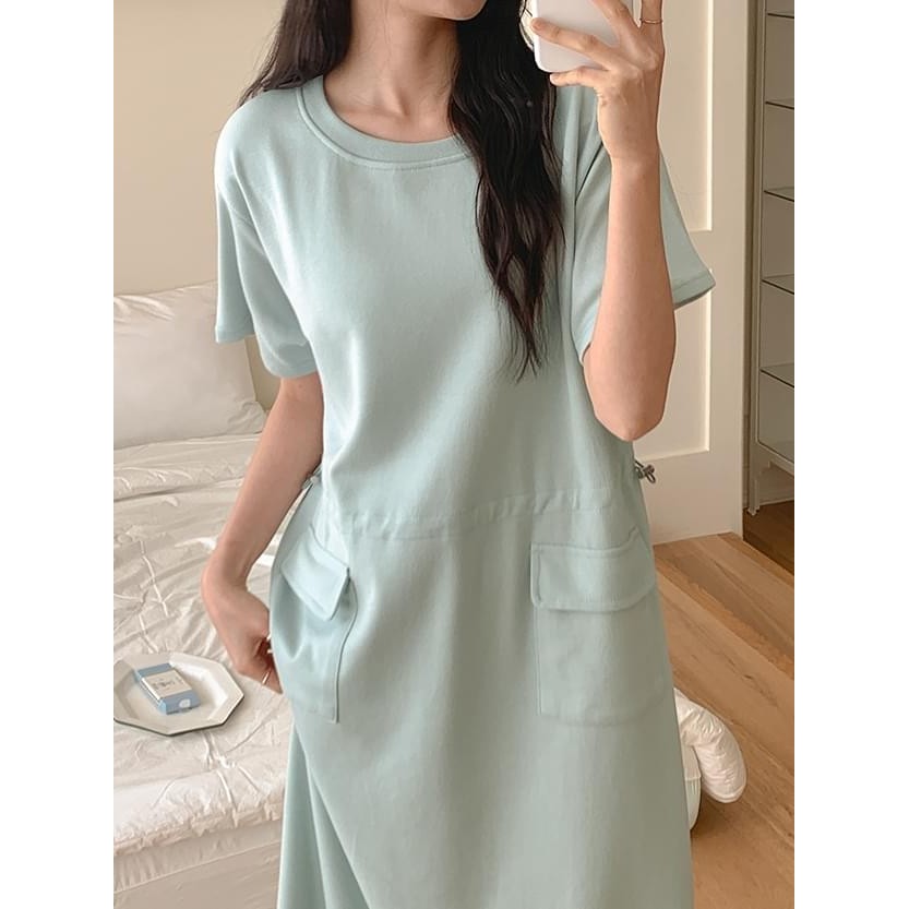 Codibook|韓國 09WOMEN 休閒圓領口袋寬鬆牛仔中長洋裝[預購]及膝洋裝 牛仔洋裝 女裝奶油色,1(66-99)|薄荷色,1(66-99)|黑色,1(66-99)|奶油色,2(100-120)|薄荷色,2(100-120)|黑色,2(100-120)Codibook 韓國女裝購物平台