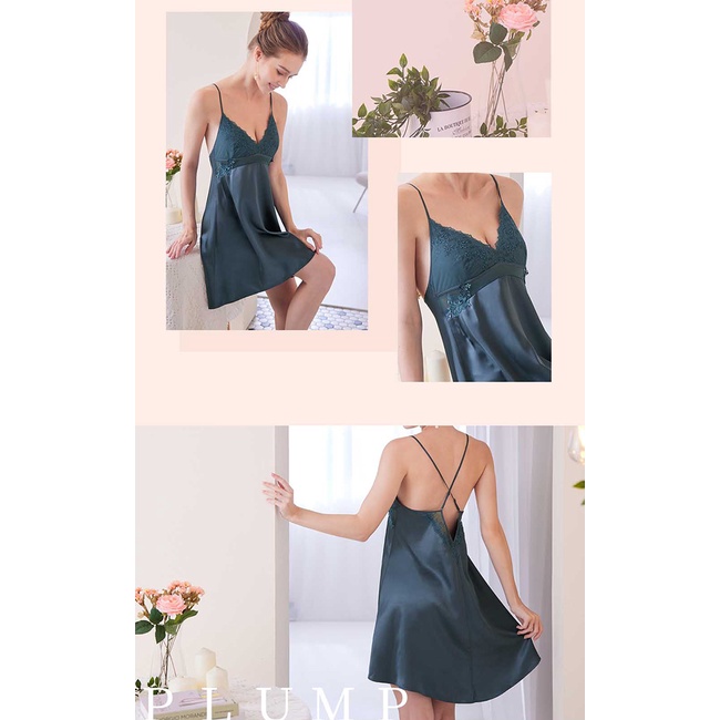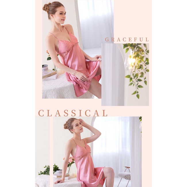 【EASY SHOP】Audrey-邂逅巴黎-性感奢華精緻連身裙睡衣-皇家灰藍L|MNight DressesEASY SHOP官方直營