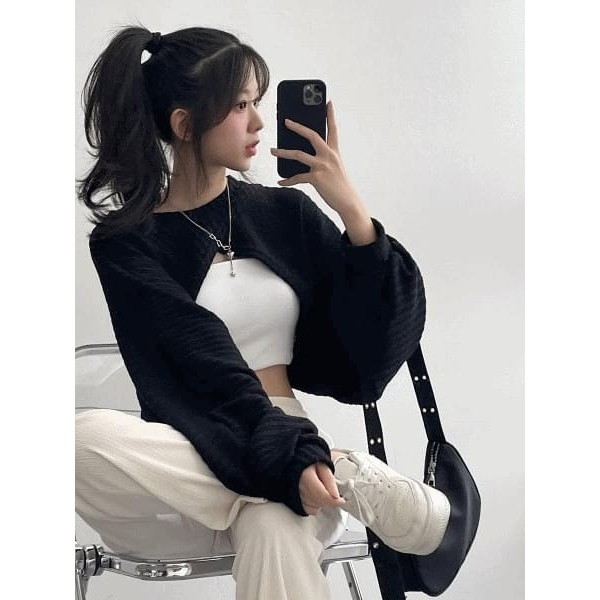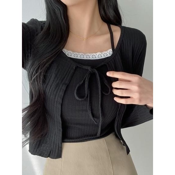Codibook|韓國 dangosister 蕾絲背心+羅紋綁帶開衫兩件套裝[預購]長袖上衣 女裝象牙白|天空藍|黑色T-shirtsCodibook 韓國女裝購物平台