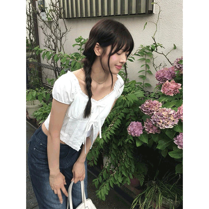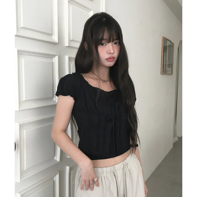 Codibook|韓國 anyonemore 荷葉邊綁帶露肩短版襯衫[預購]雪紡襯衫 女裝free,象牙白|free,黑色Shirts & BlousesCodibook 韓國女裝購物平台