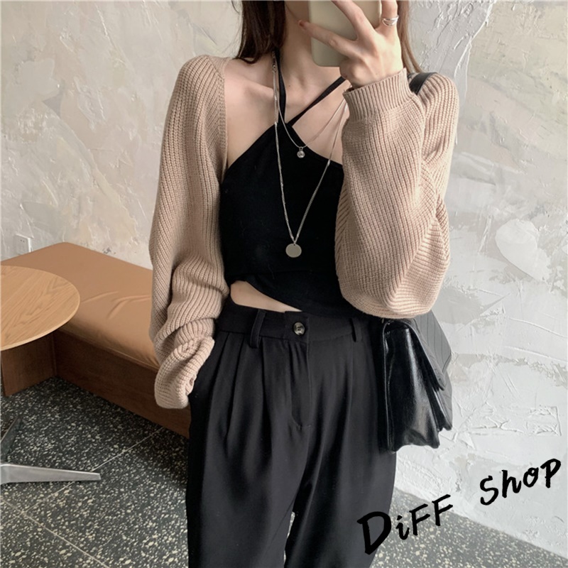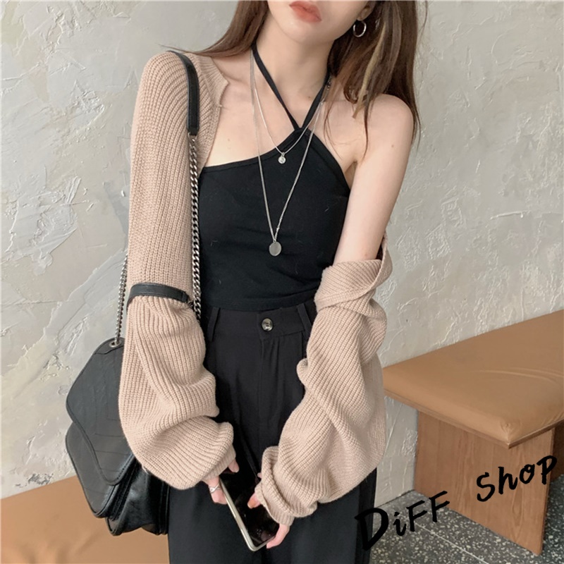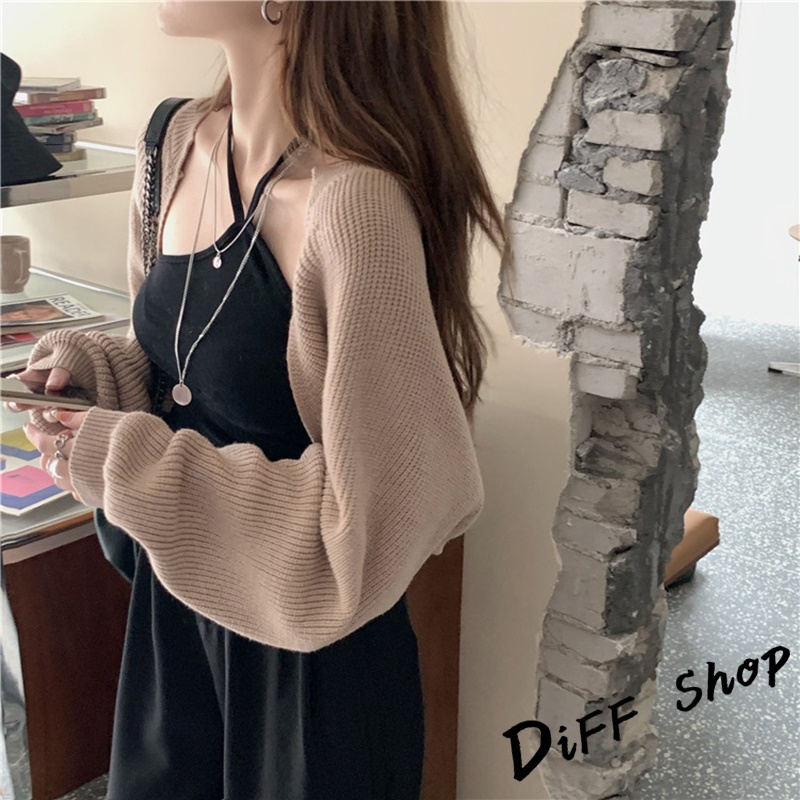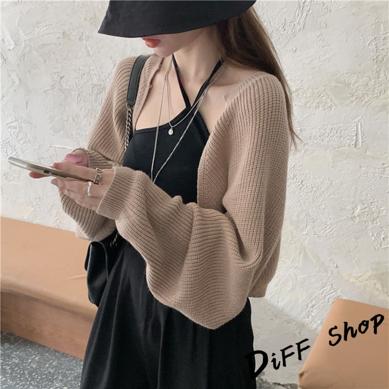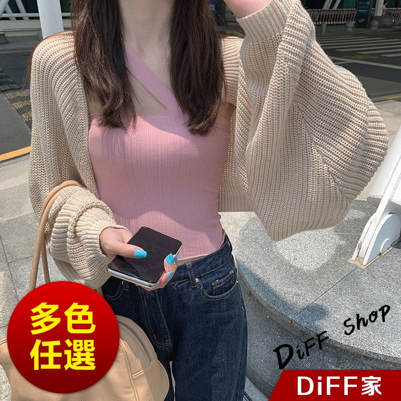 【DIFF】韓版寬鬆慵懶風薄款防曬針織外套 短版上衣 短版外套 女裝 衣服【J195】【J195】灰色|【J195】杏色|【J195】黑色DiFF shop