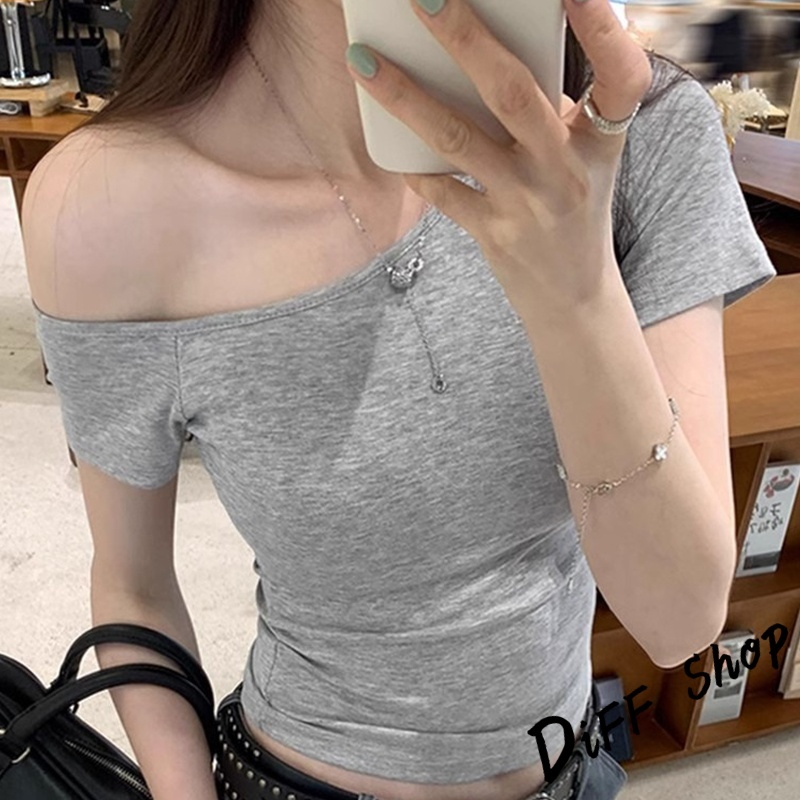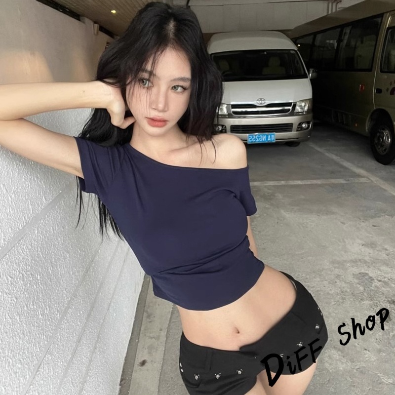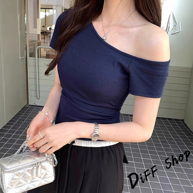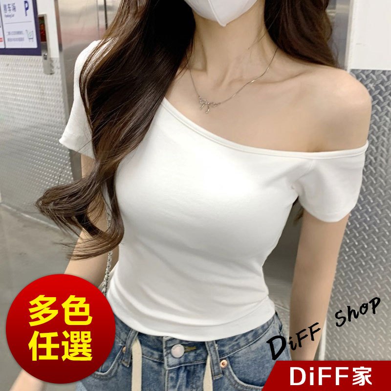 【DIFF】韓版氣質斜肩短版上衣 露肩上衣 短袖上衣 衣服 夏天女裝 短板上衣 短版t恤 女裝 短袖t恤女【T616】【T616】酒紅|【T616】白色|【T616】深藍色|【T616】紫色|【T616】黑色T-shirtsDiFF shop